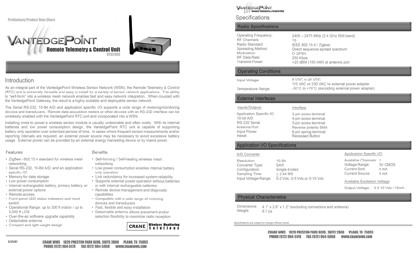 Crane WMS & VantedgePoint are registered trademarks of Signal Technology in the United States and other
