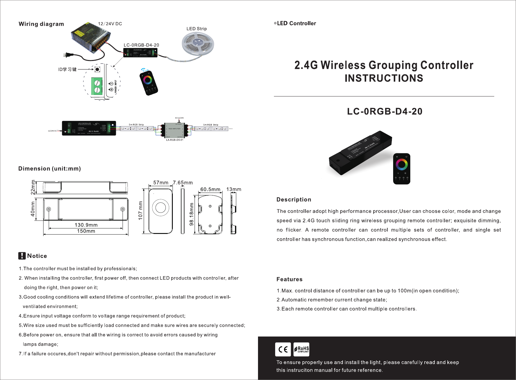 Signcomplex LC0RGBD420 2.4G Wireless Grouping controller User Manual