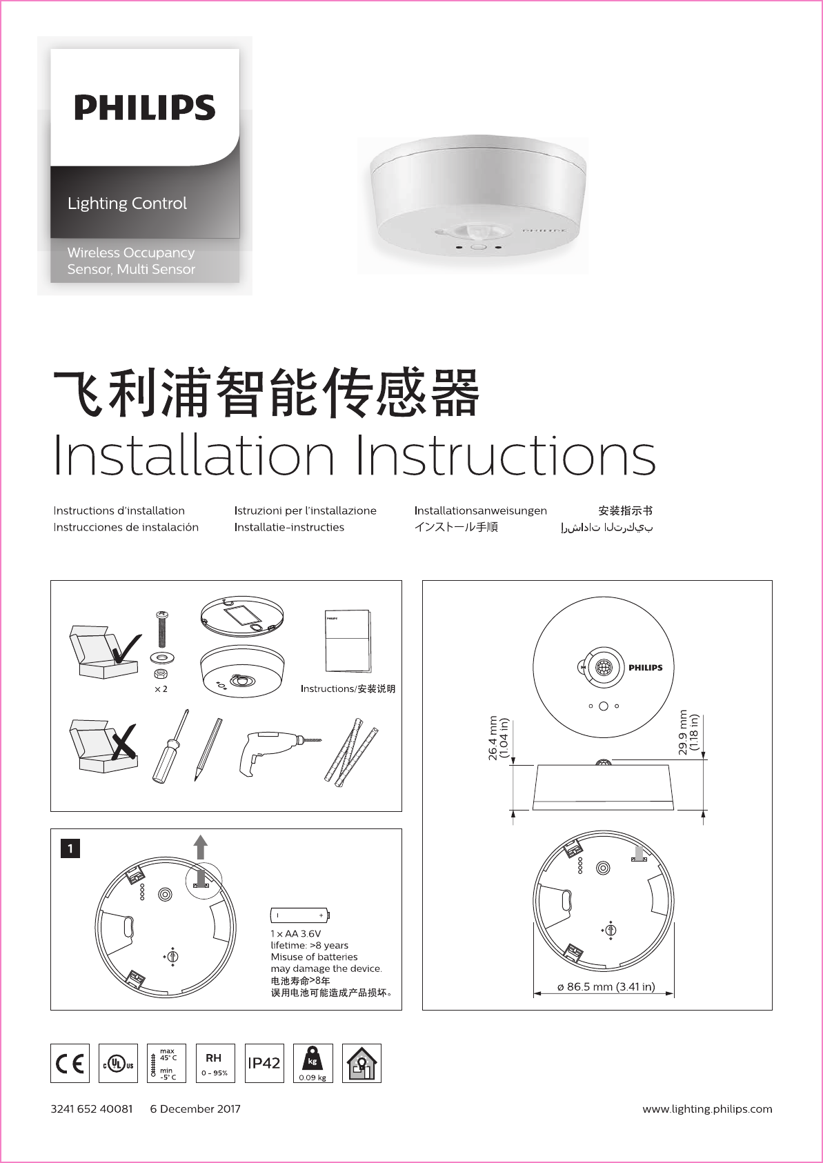 Signify 9290018190X Philips Occupancy and Multi Sensor User Manual 65240081 MAS LEDtube ES 1200mm UO 16 5W T8 IA LR