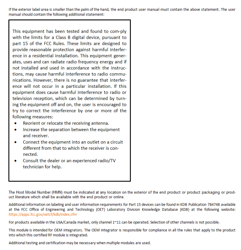 If the labelling area is small than the palm of the hand, then additional FCC part 15.19