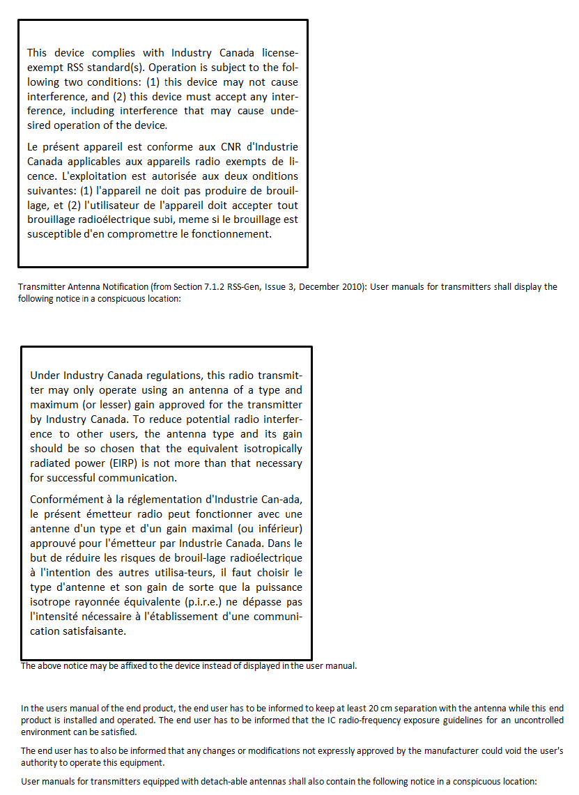 In the users manual of the end product, the end user has to be informed to keep at least 20 cm