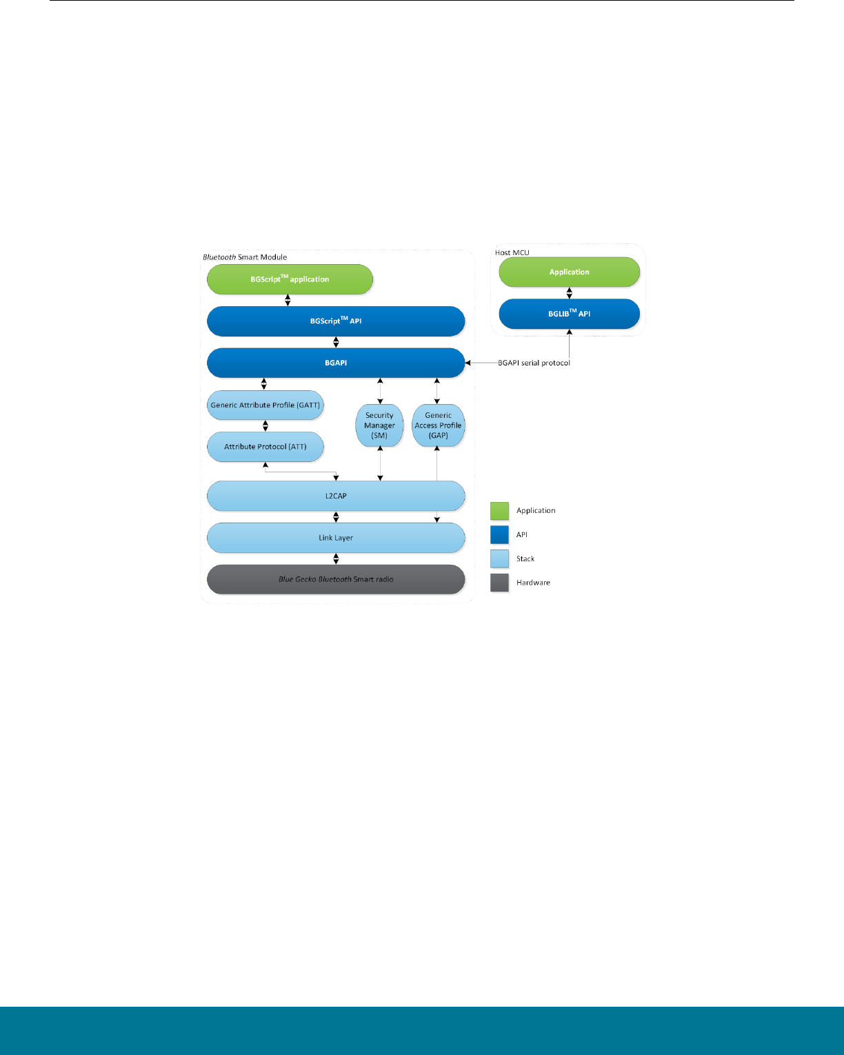 application: Bluetooth radio, software stack and GATT based profiles and it can also