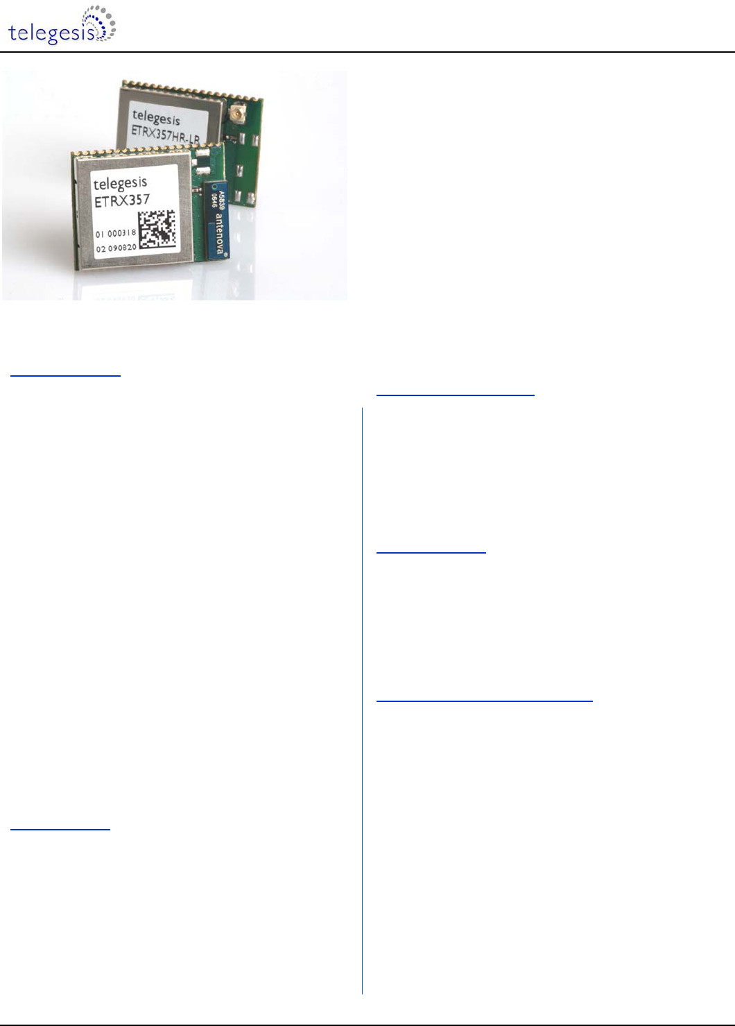 ©2010 Telegesis (UK) Ltd - 3 - ETRX35x-LR Preliminary Product Manual
