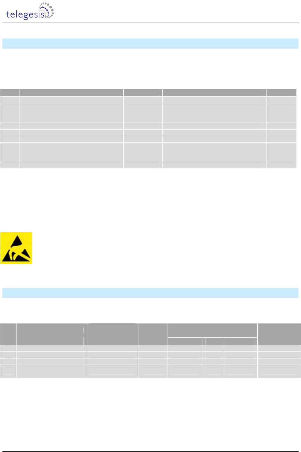 Telegesis (UK) Ltd. reserves the right to change the specification without notice, in order to
