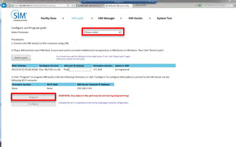 The Wi-Fi network must have access to and be accessible from the server for multiple devices (SIM™ pods and