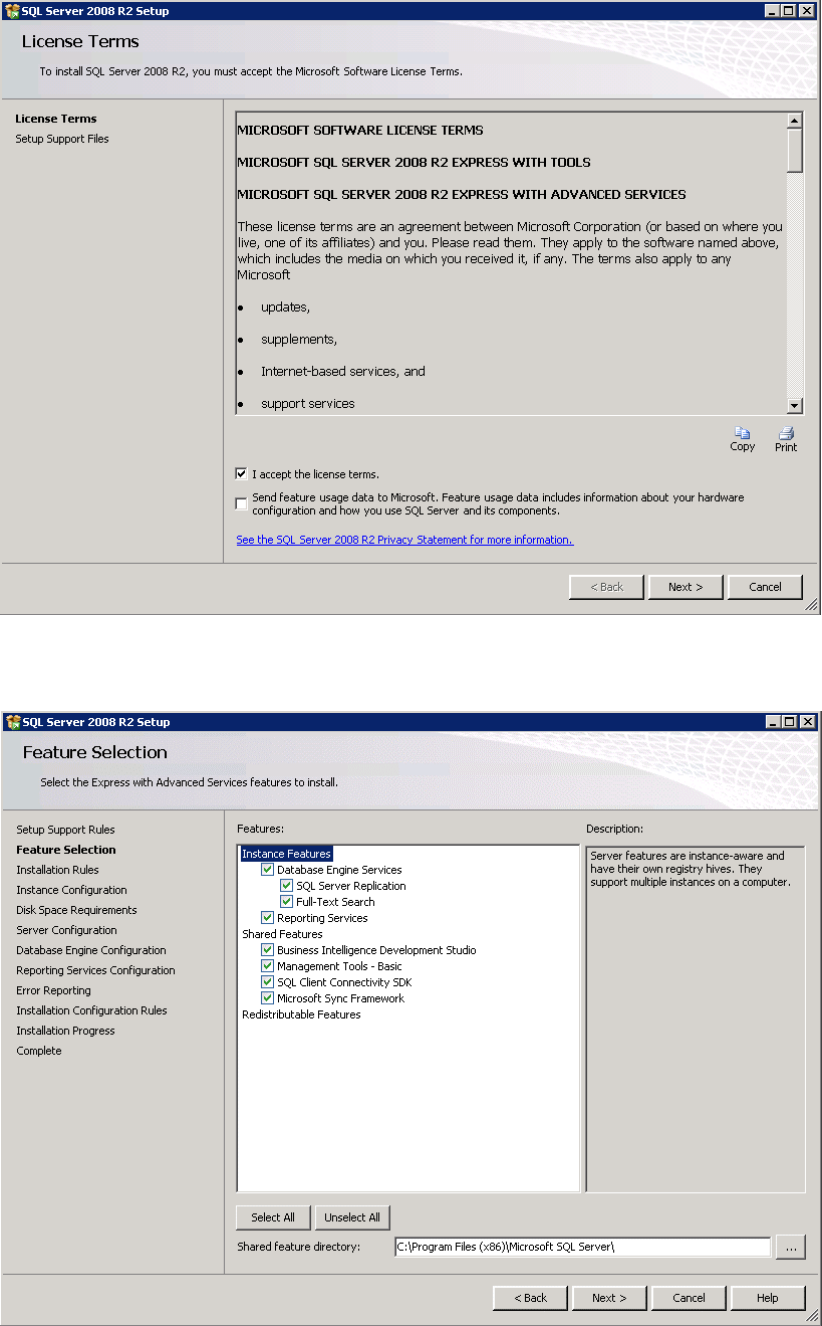 install Note 3: Instructions to install Microsoft SQL Server 2008 R2 Sp1 EXPRESS edition ................... 153
