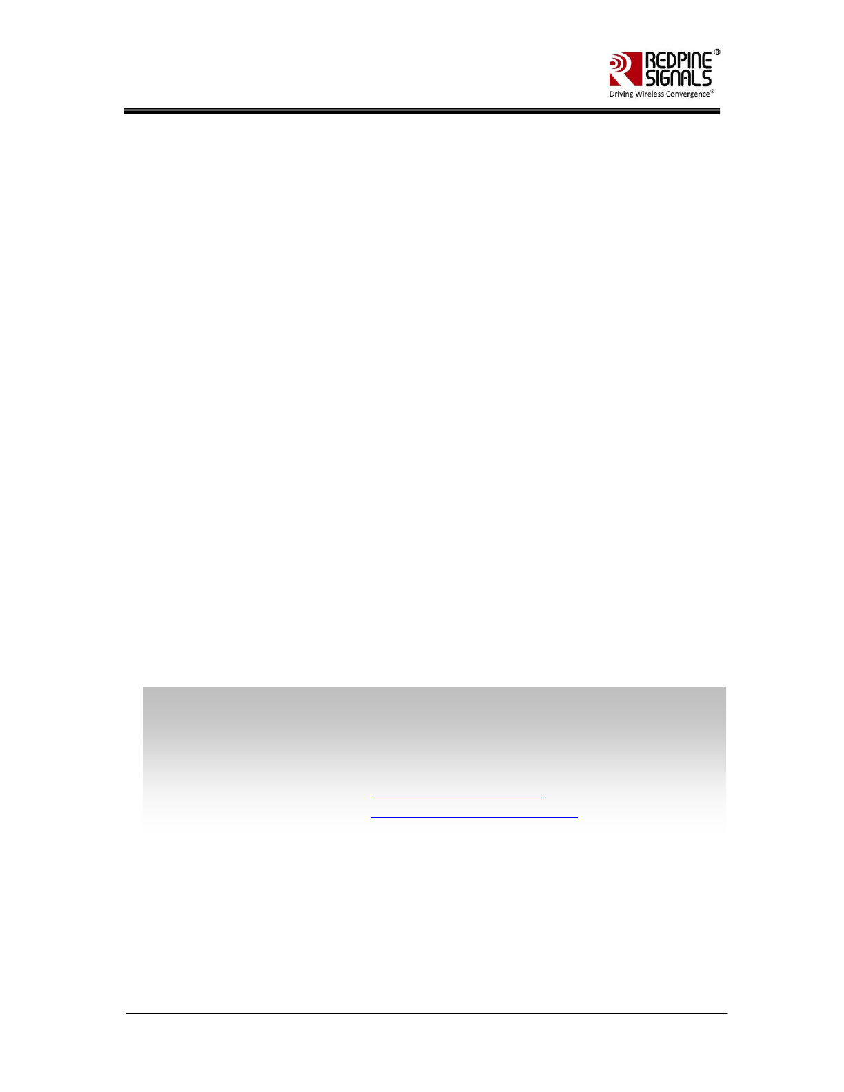 The information in this document pertains to information related to Redpine Signals,