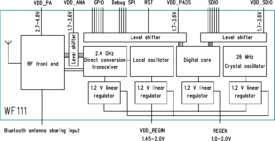 Silicon Laboratories Finland WF111 IEEE 802.11b/g/n Wi-Fi module WF111 User Manual WF111 Datasheet