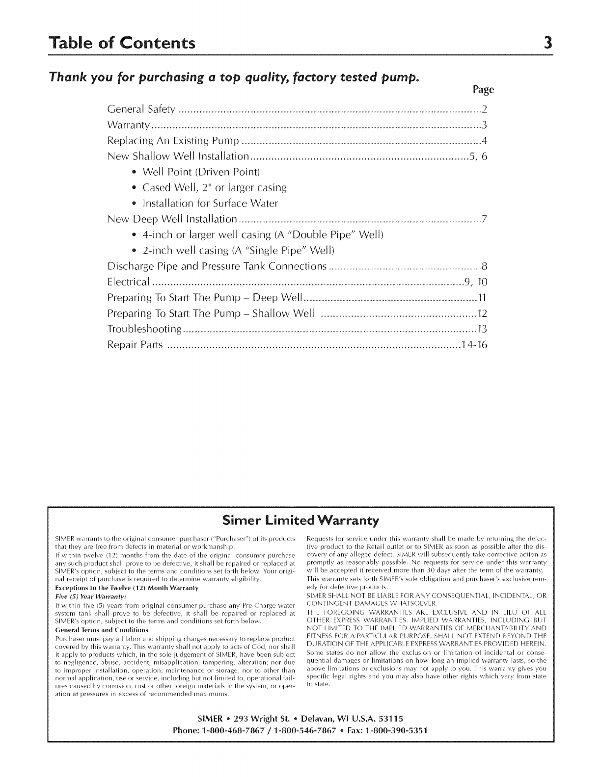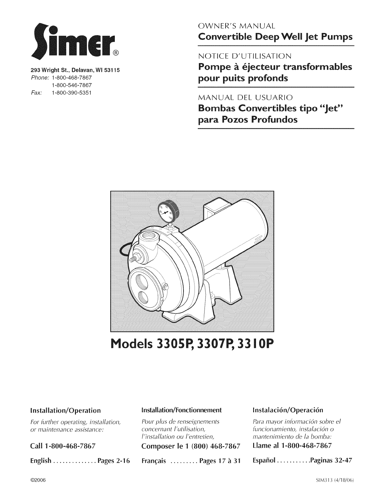 User Manual: Simer 3310P 3310P SIMER DEEP WELL PUMP - Manuals and Guides View the owners manual for your SIMER DEEP WELL PUMP #3310P. Home:Plumbing Parts:Simer Parts:Simer DEEP WELL PUMP Manual