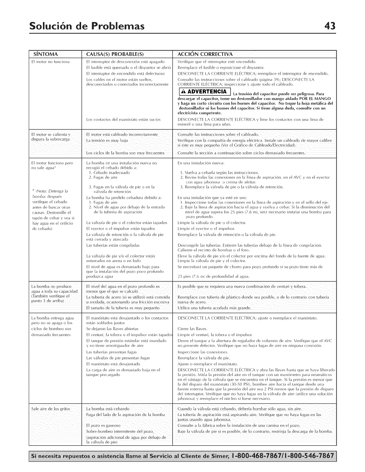 , Sobre:bombe 0 intermitente del pozo, Baje la v_lvula de pie si es posible, de !o contrario, restdnja !a descarga de la bomba.
