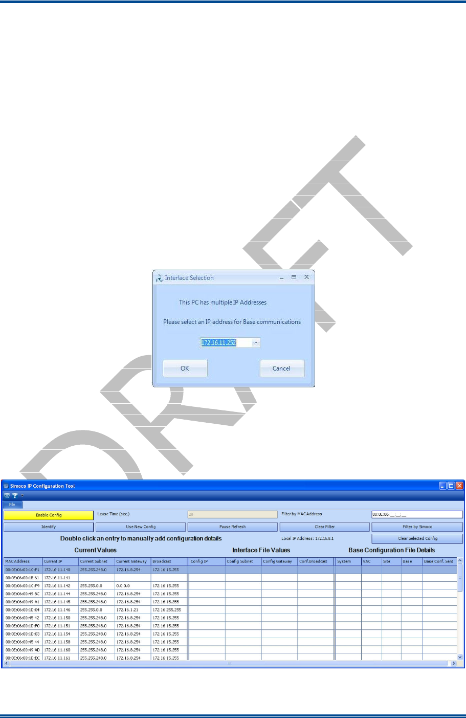7. Once the IP address has been selected the Simoco IP Configuration Tool main screen will be