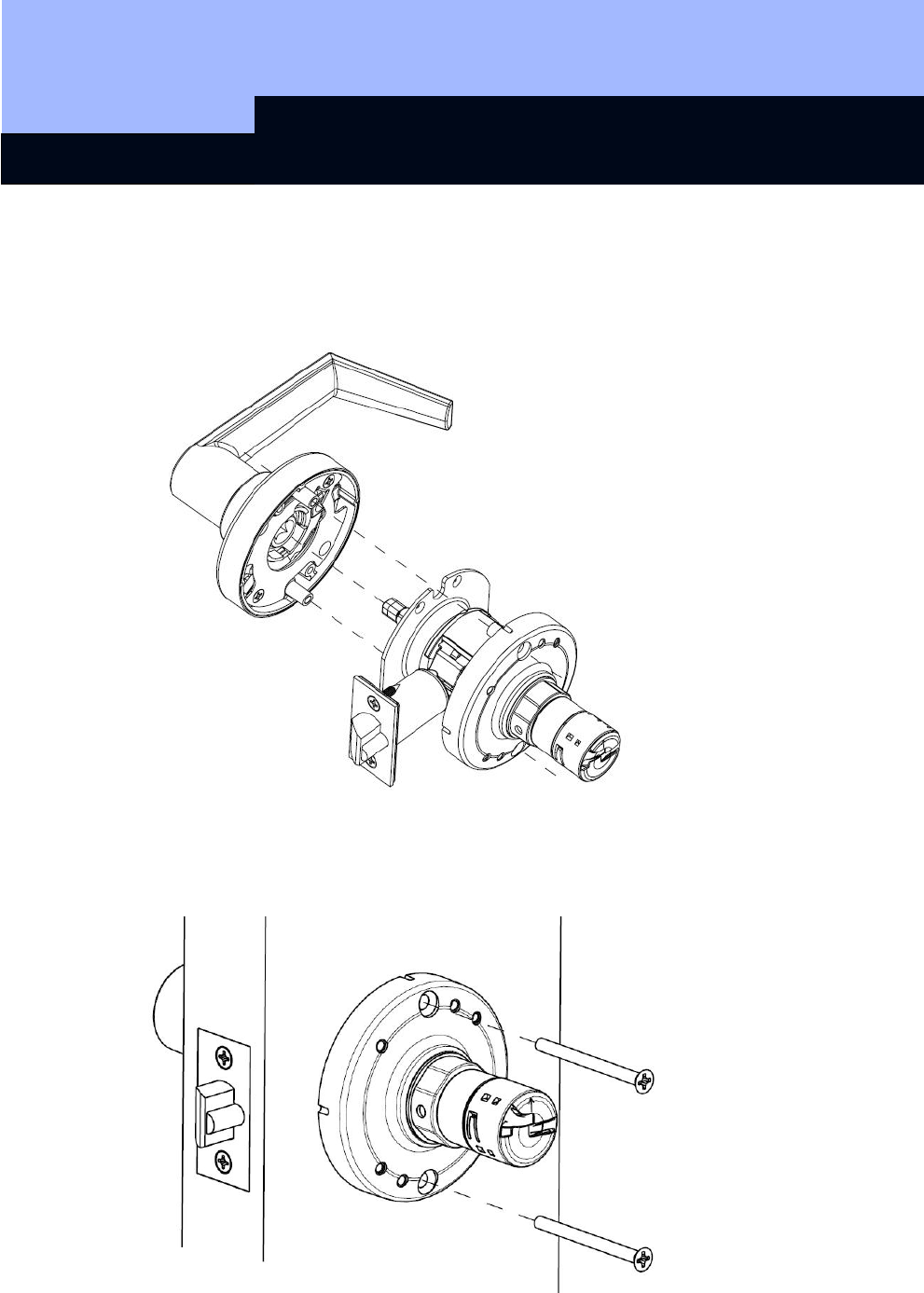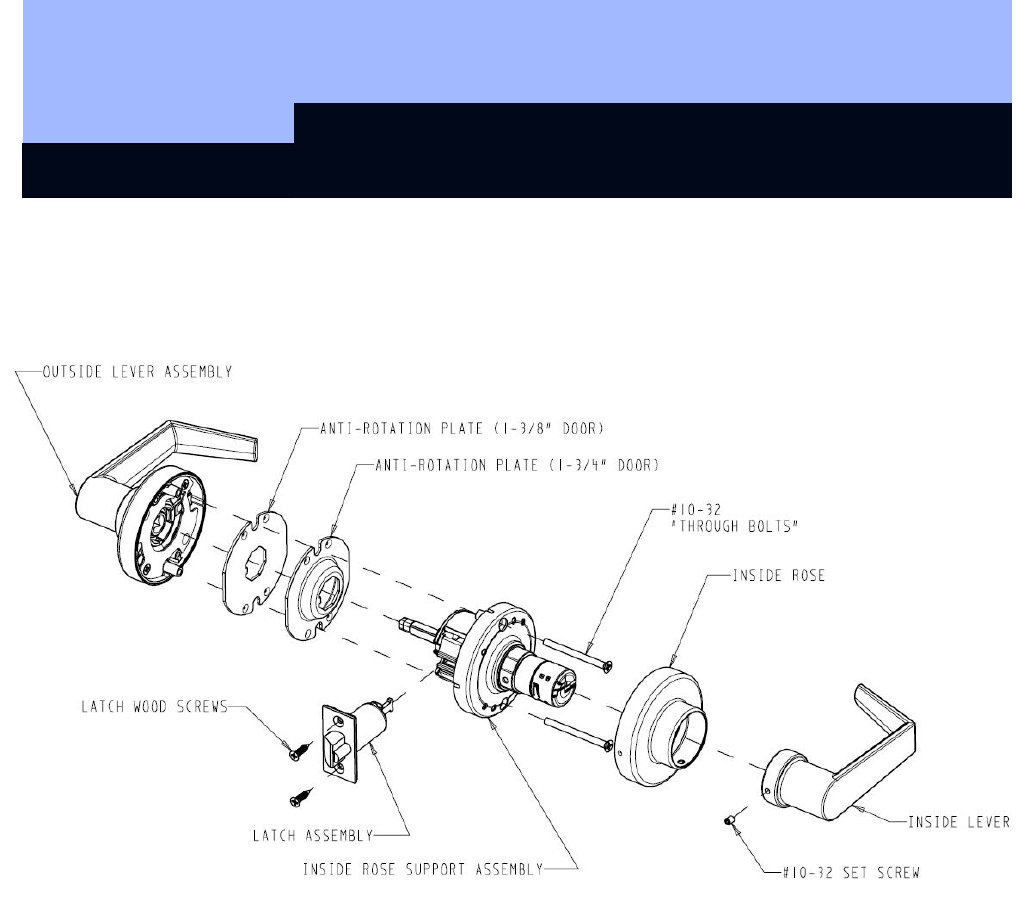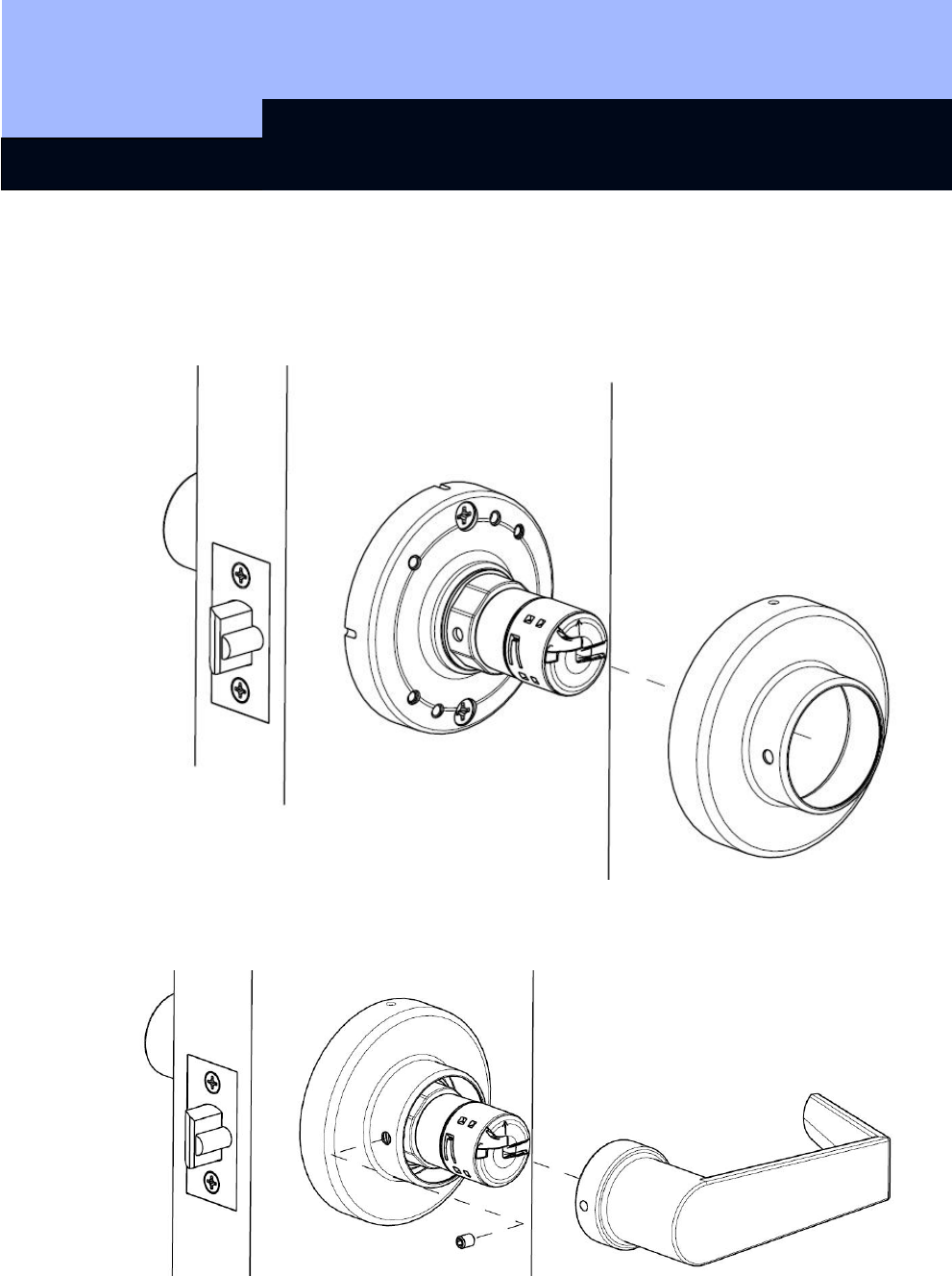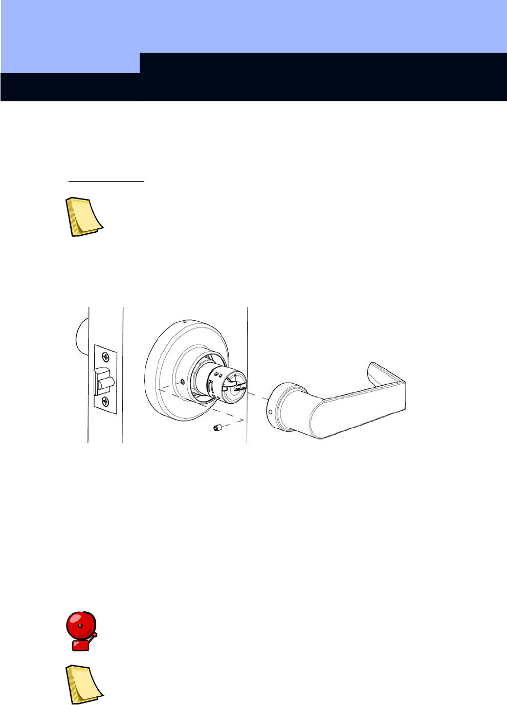 B. Install the inside lever handle. Fasten inside lever handle with setscrew inserted in