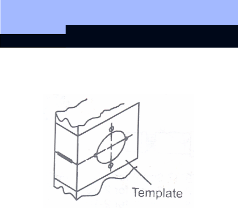 floor. Fold template over edge of door, centering on horizontal line. Mark centers of