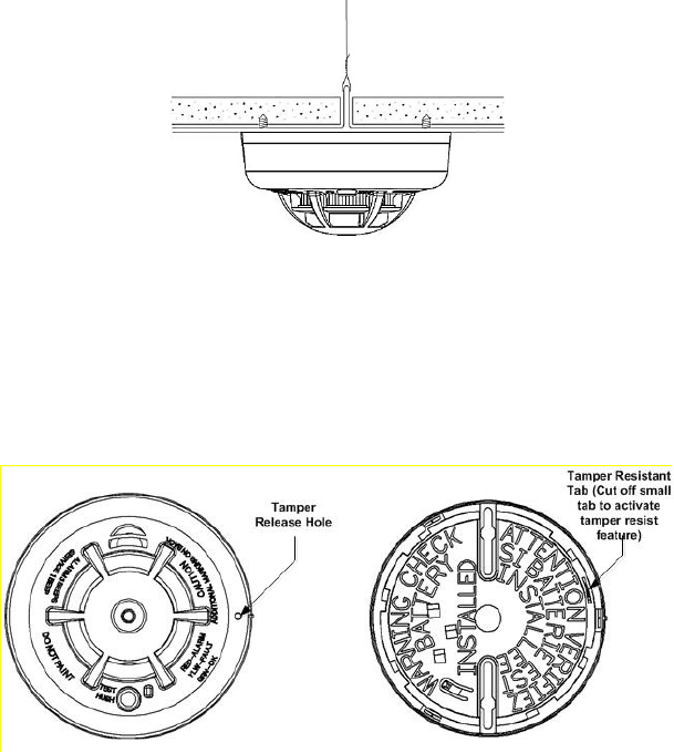 to prevent tile removal or mount the detector across a ceiling panel support as shown in