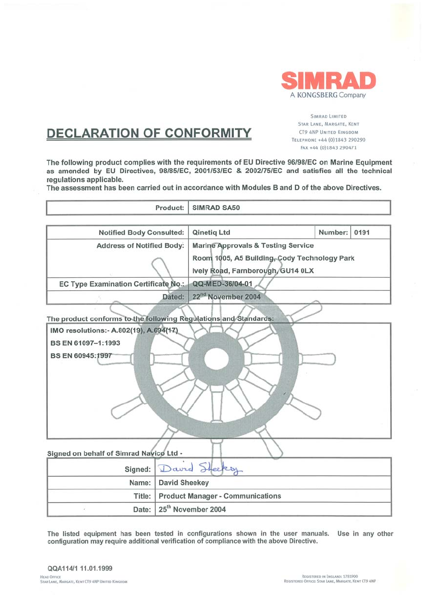 The SART should be taken to an authorized Simrad dealer (for details please consult the