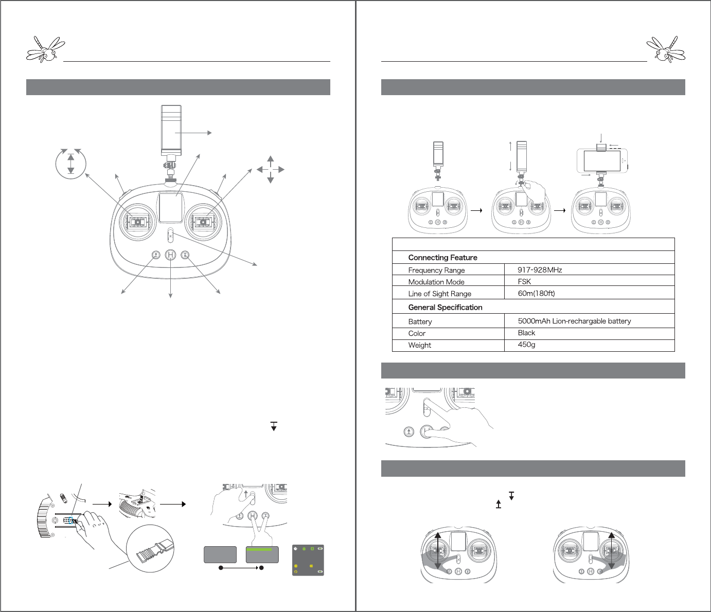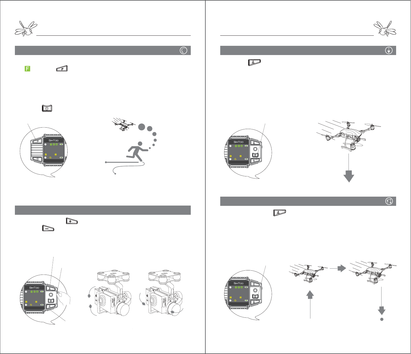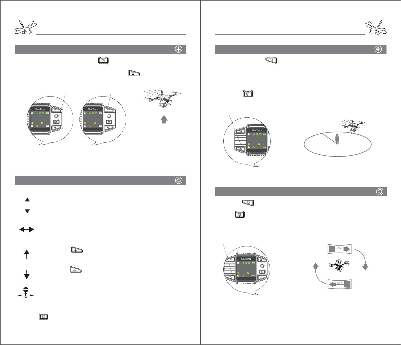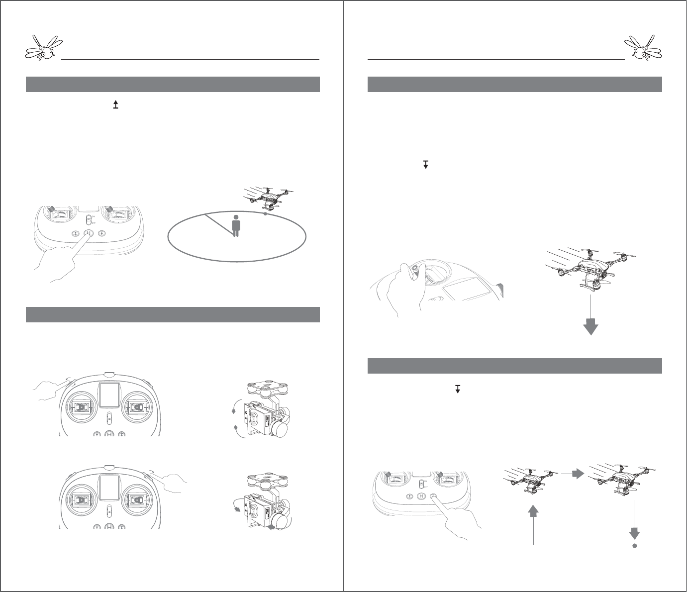 2. Place the aircraft on flat ground before take-off. After powered on, dragonfly will start a