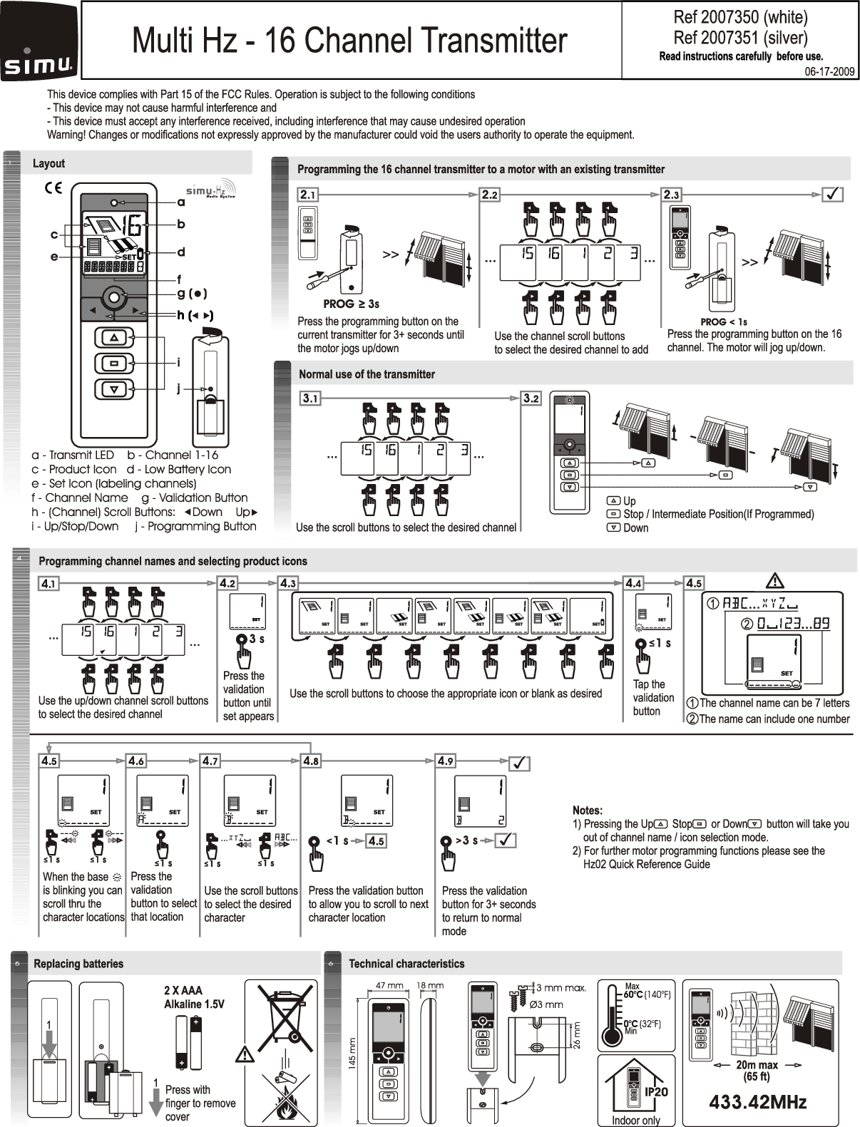 Simu U S M16CT MultiHz 16 CH Transmitter User Manual 16 ch Xmit FCC