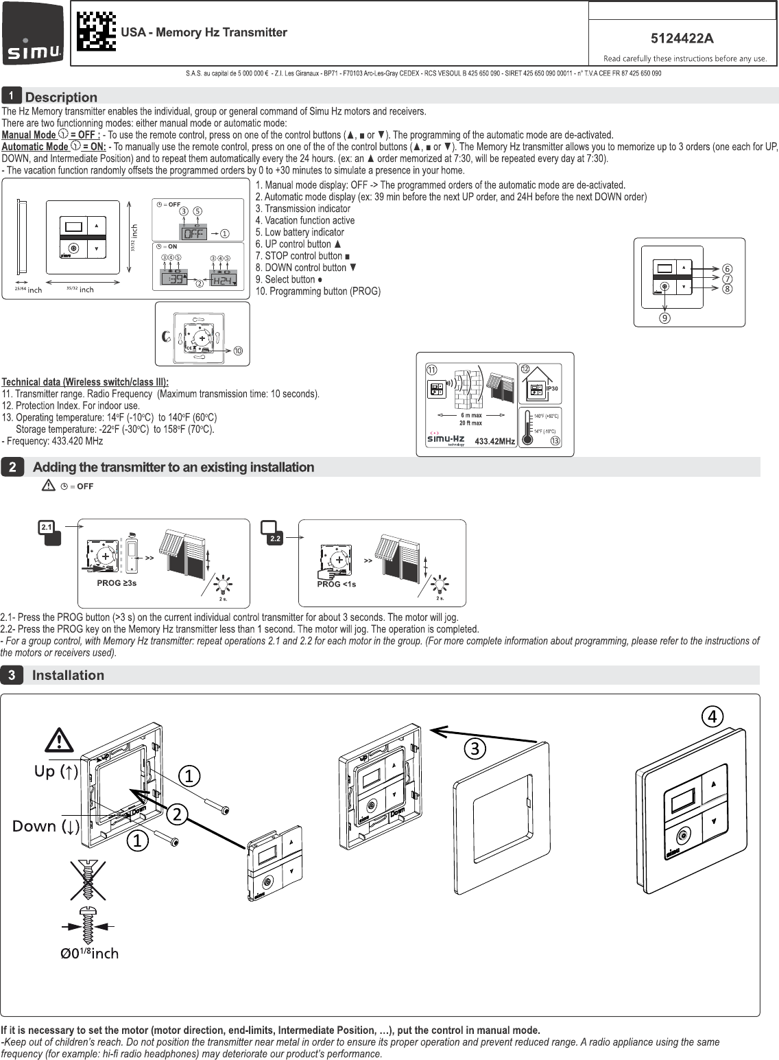Simu U S MW Memory CUBS HZ WALL Tx 2008775 User Manual Hz Memory Wall CuBs 5124422 A