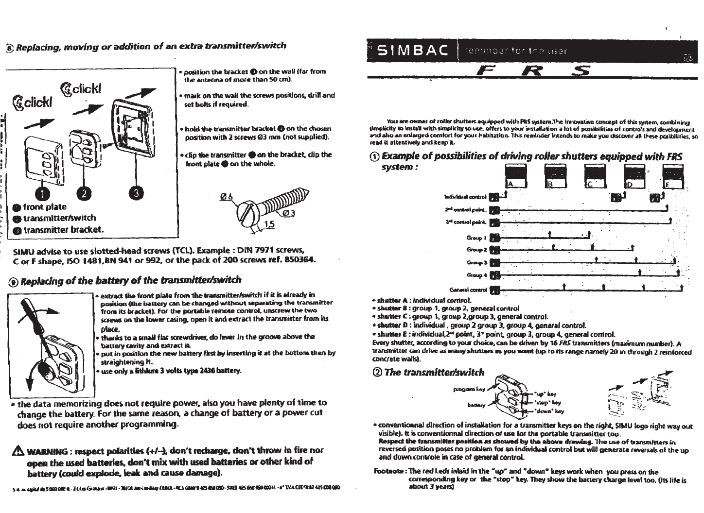 Simu U.S. Inc. Curtain Remote Control Transmitter Users Manual