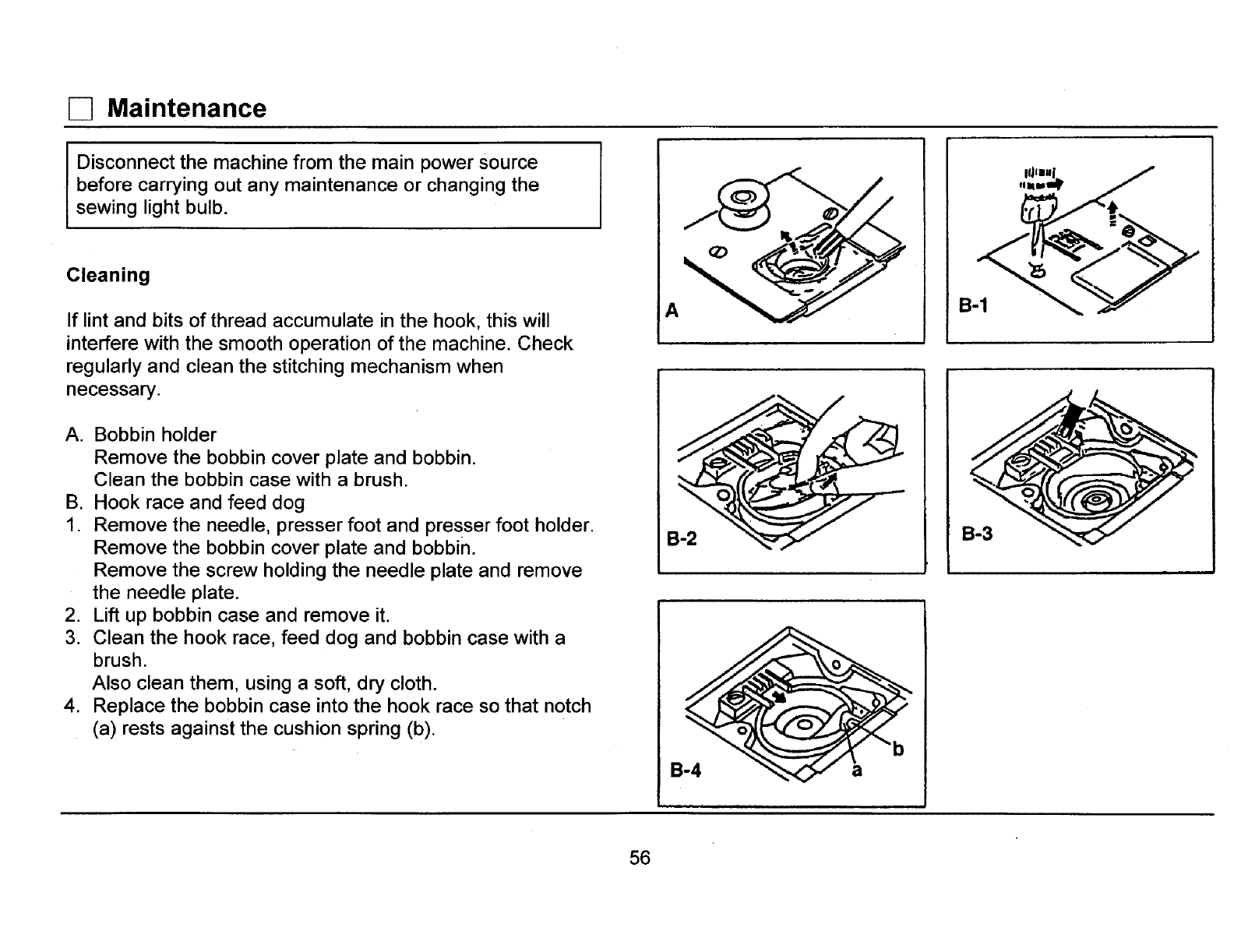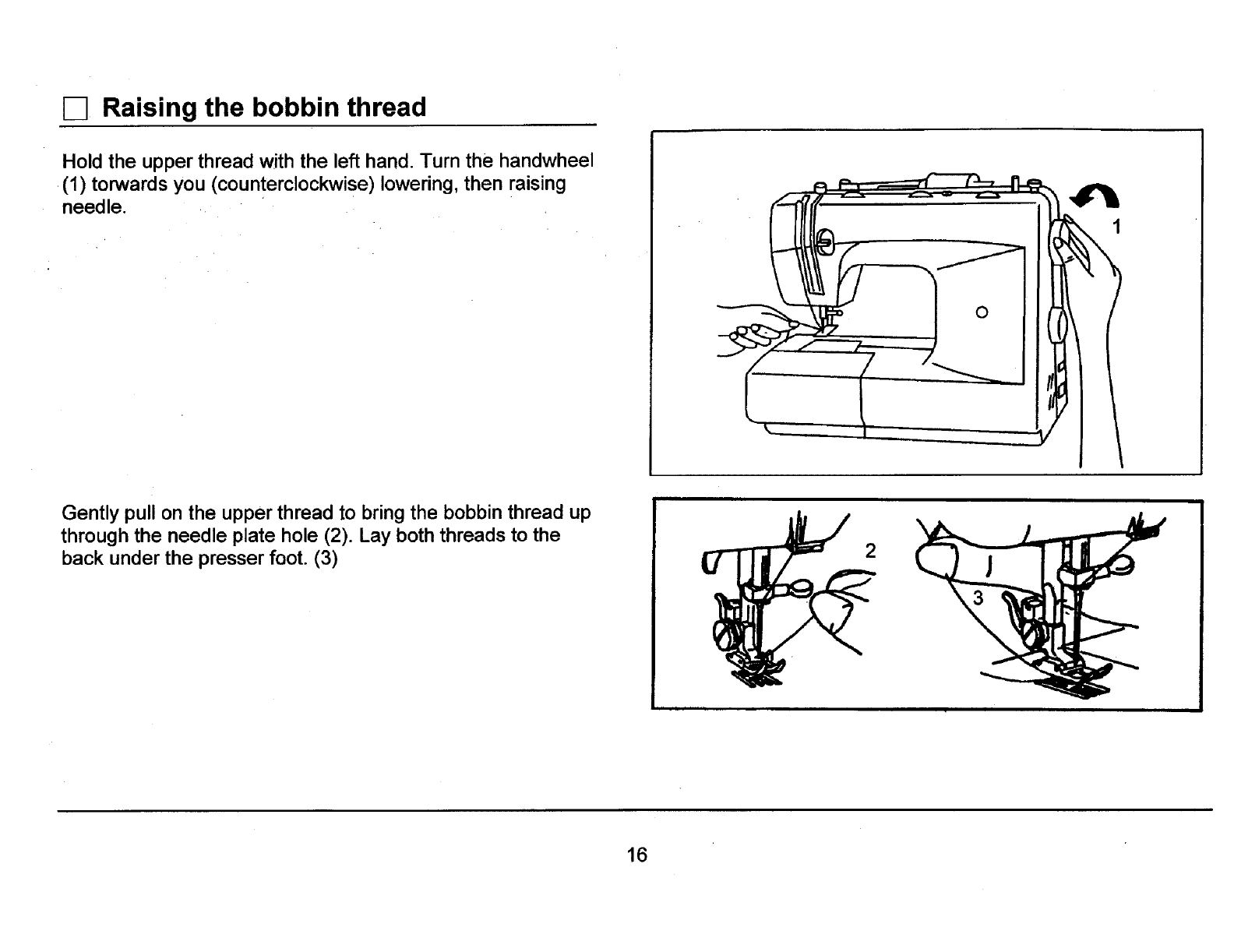 1. Remove the upper thread and bobbin, gently turn the handwheel