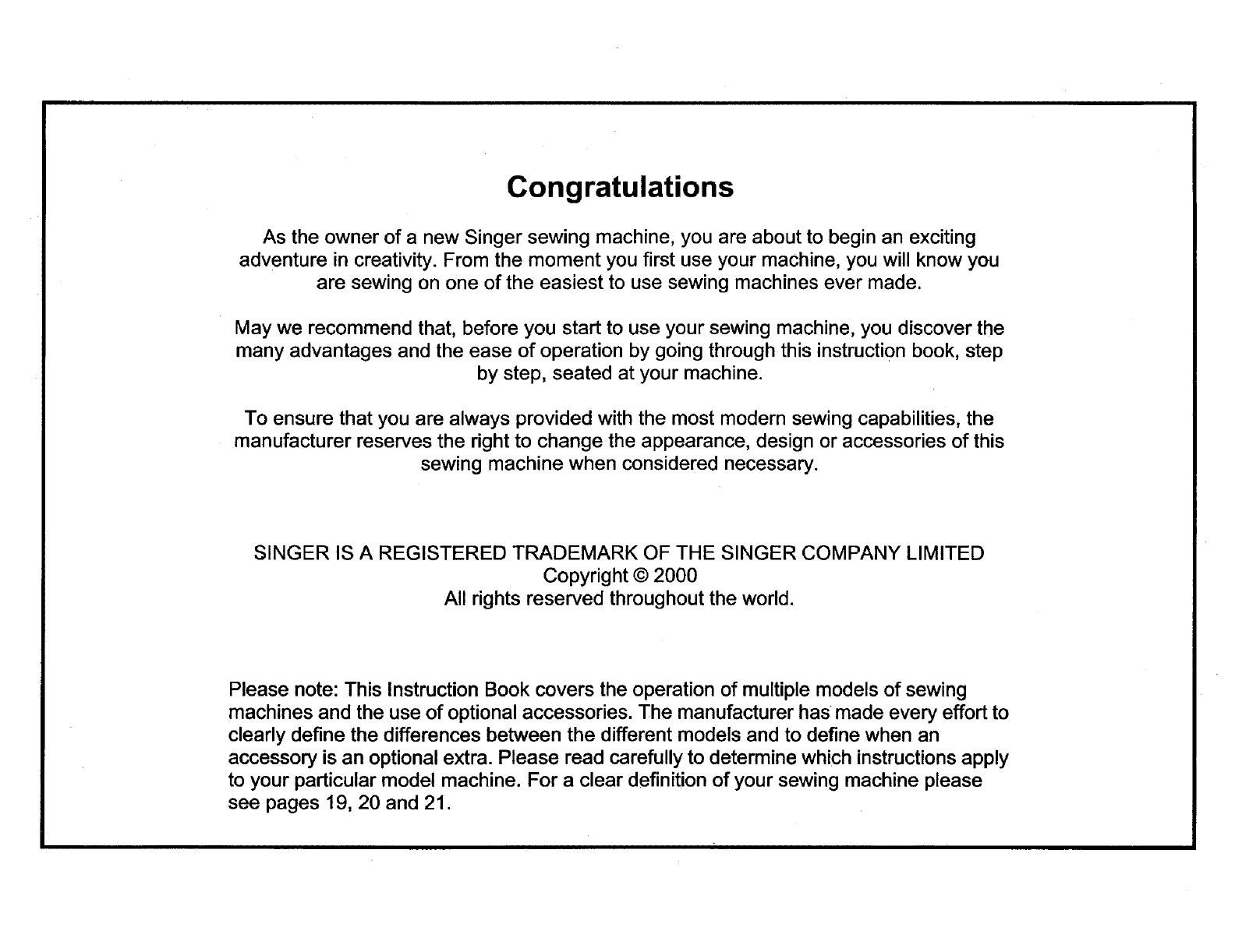 Please note: This Instruction Book covers the operation of multiple models of sewing