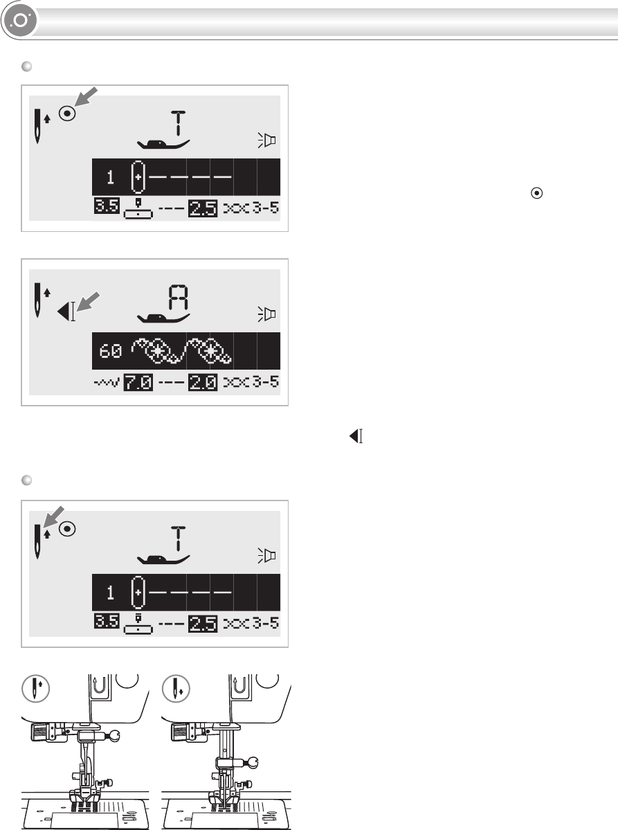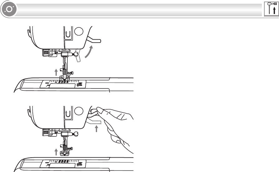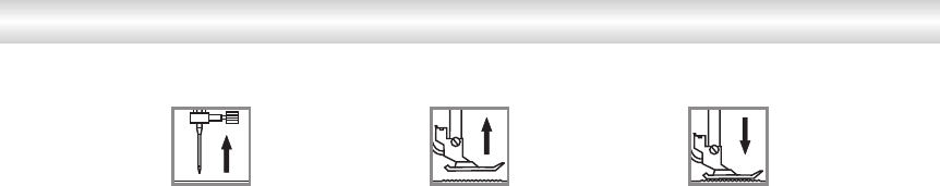 Aiguille relevée Pied presseur relevé Pied presseur abaissé