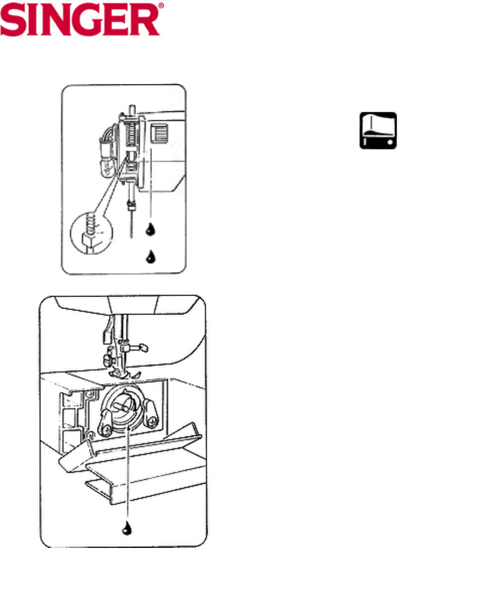 Apply one drop of sewing machine oil on illustrated