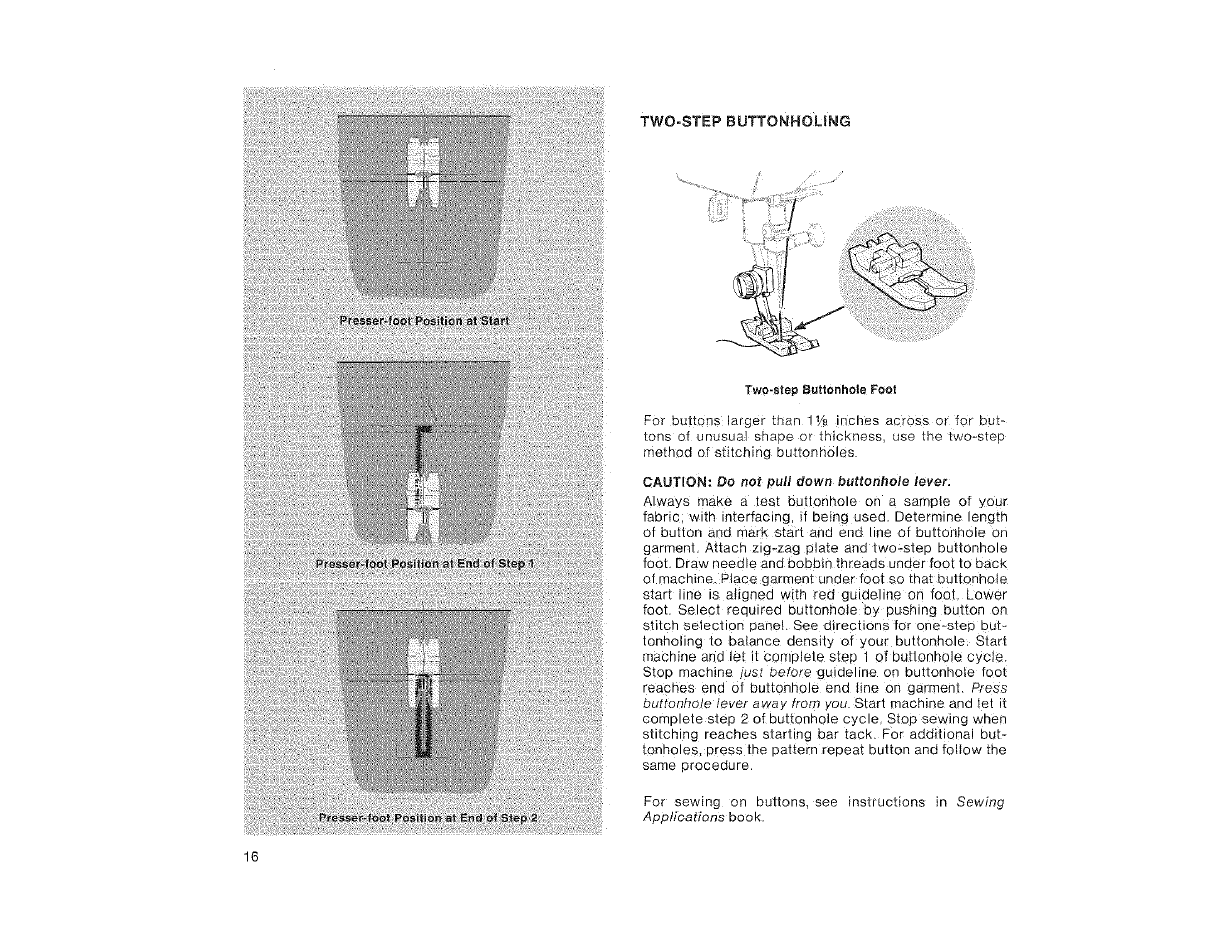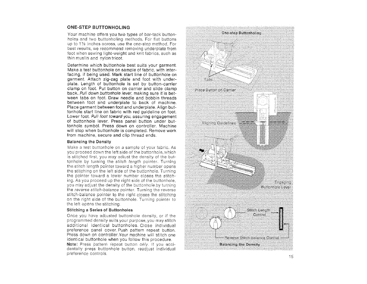 One-step Buttonholing ..... ........ ,....... , ...................................... !5