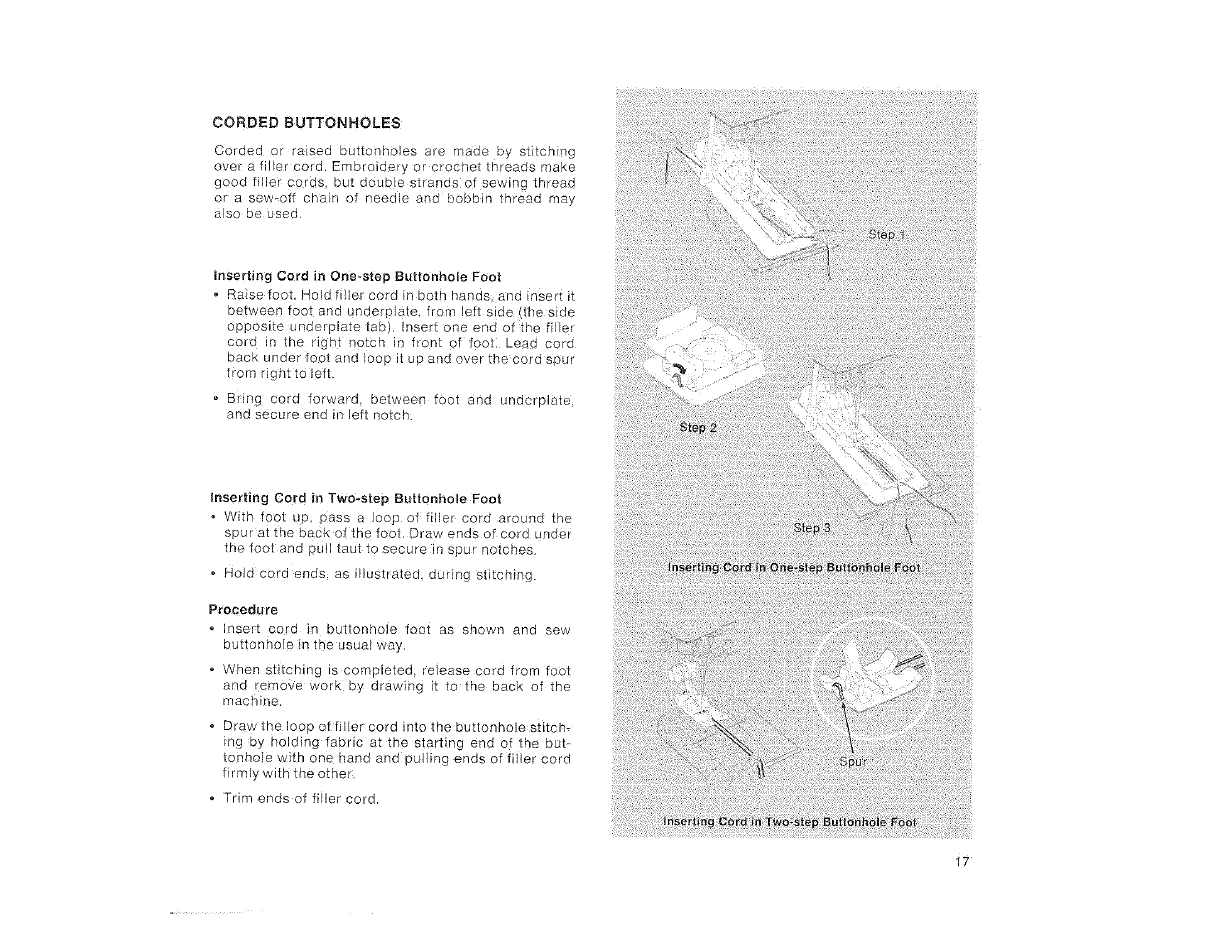 inserting Cord in One-step Buttonhole Foot • inserting Cord in Two-step Buttonhole Foot
