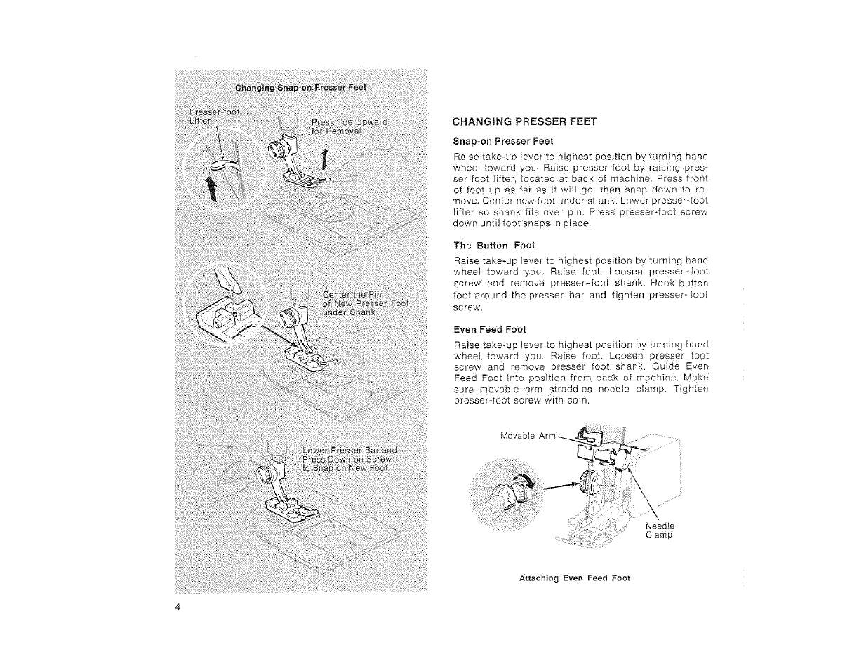 Snap-on Presser Feet •The Button Foot, Even Feed Foot