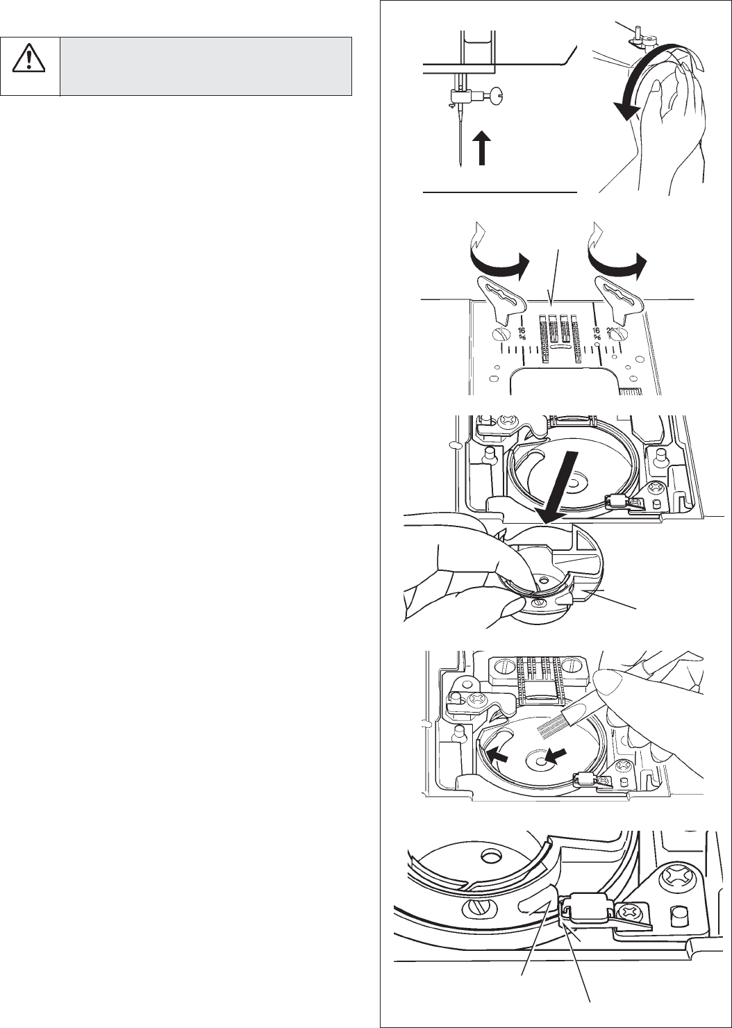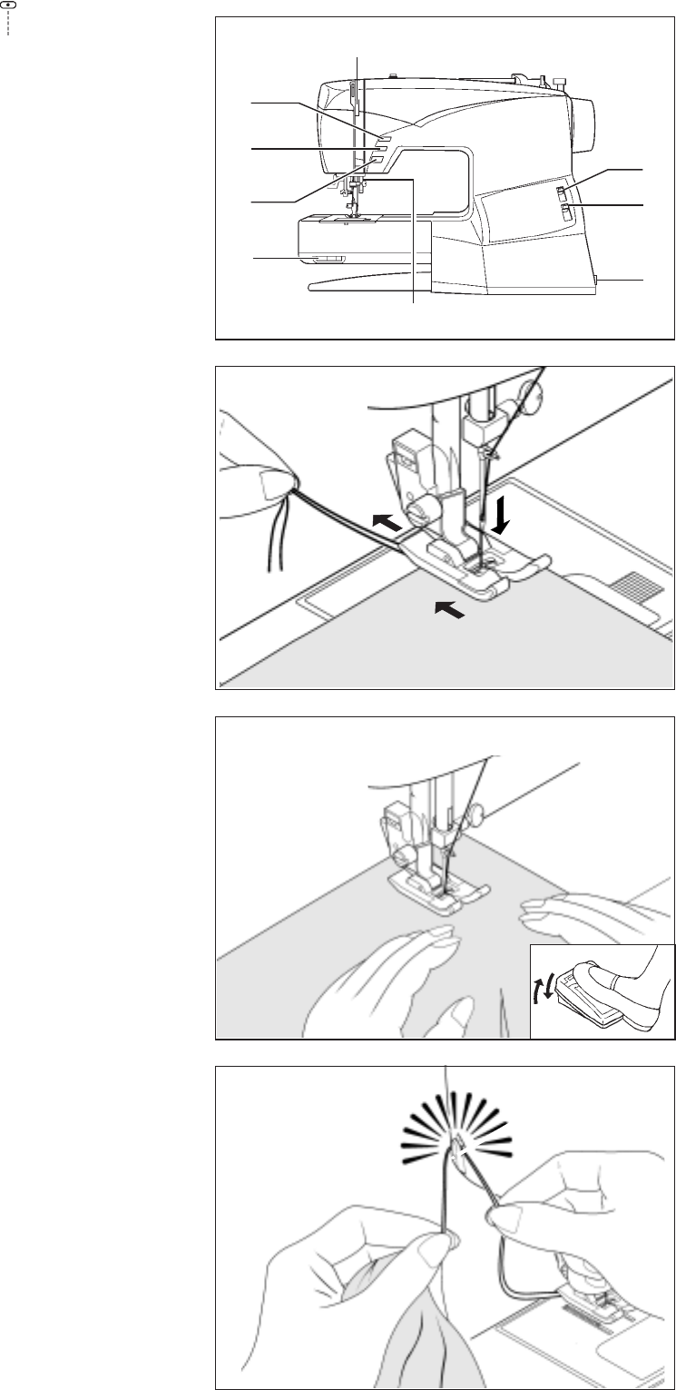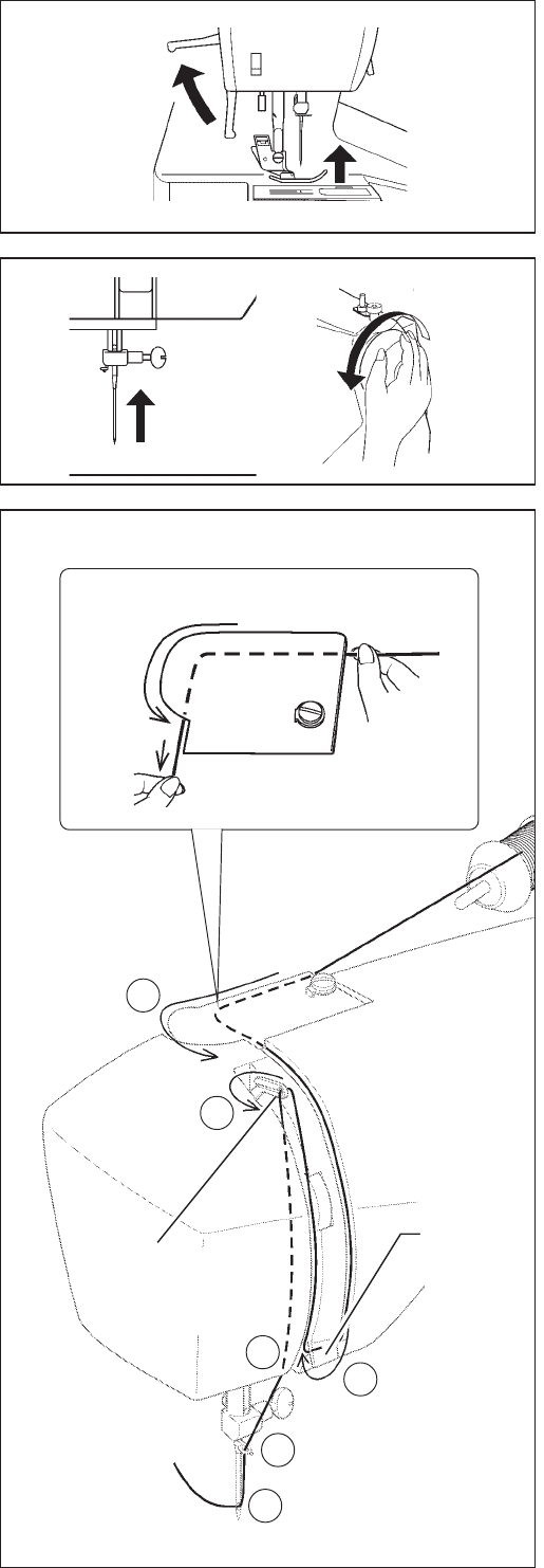 9. «Arrêtez («0») la machine à coudre lorsque vous faites des réglages à l’aiguille, enfilage, changement.