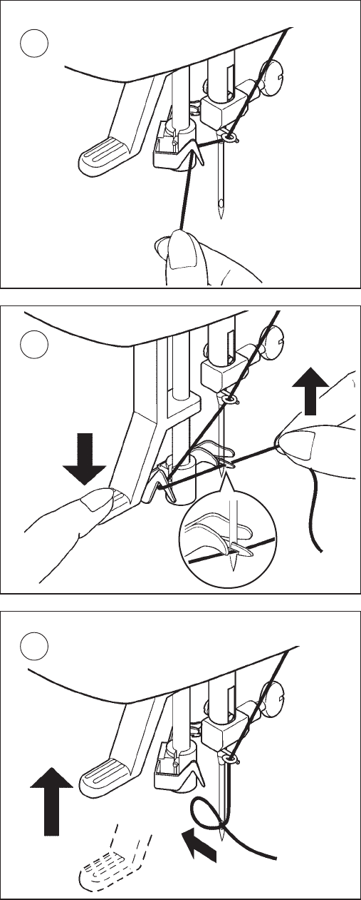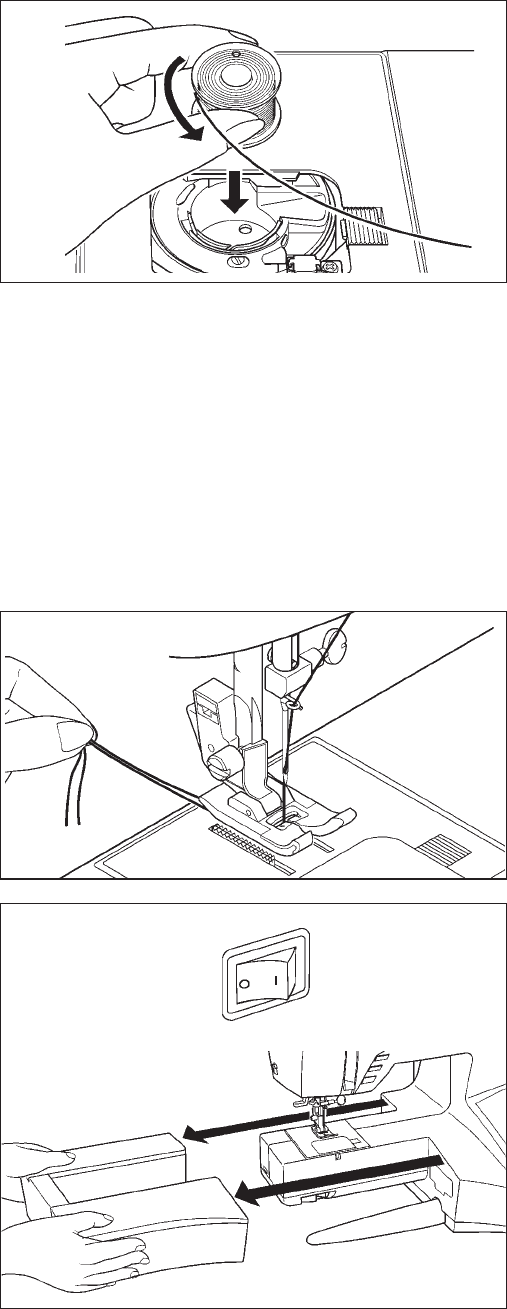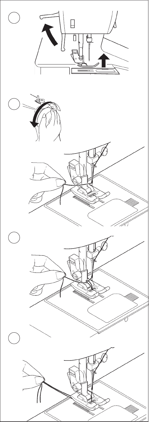 prensatelas antes de empezar a coser, - Sacar ambos hilo