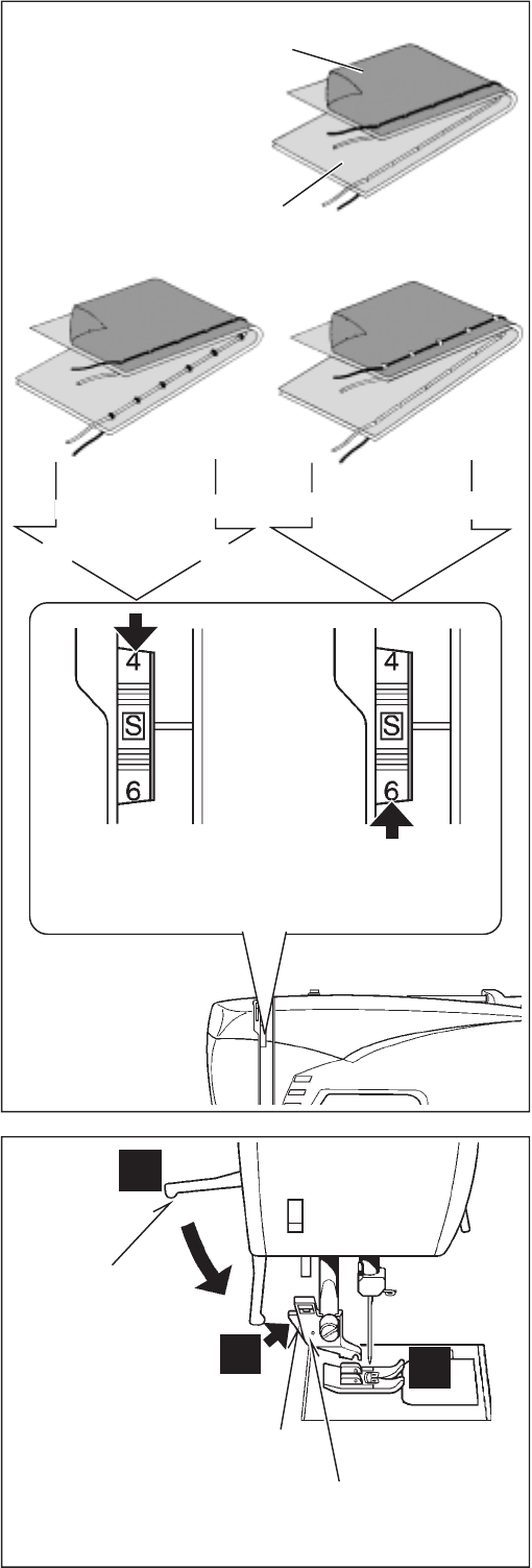 debajo del prensatelas unos 10 cm y mantener hasta que se