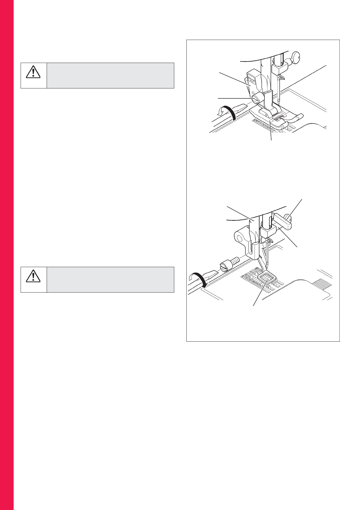 6. «Utilisez toujours la plaque à aiguille recommandée. Une plaque inappropriée peut causer le bris de l’aiguille.»