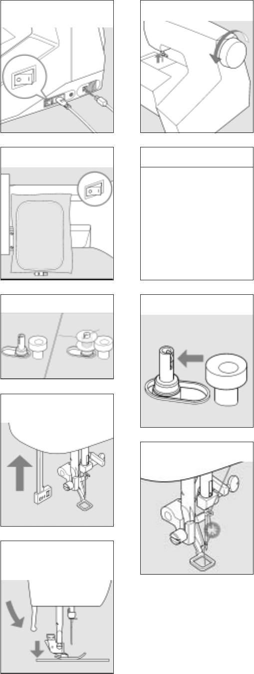 14. “Switch the sewing machine off (“0”) when making any adjustments in the needle area, such as threading needle, changing