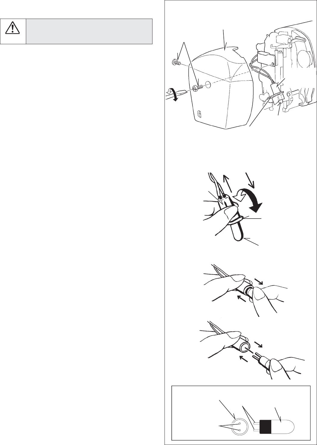 2. «Débranchez toujours avant de remplacer l’ampoule. Remplacez l’ampoule par une ampoule similaire de 6.5 V 2.8 watts.