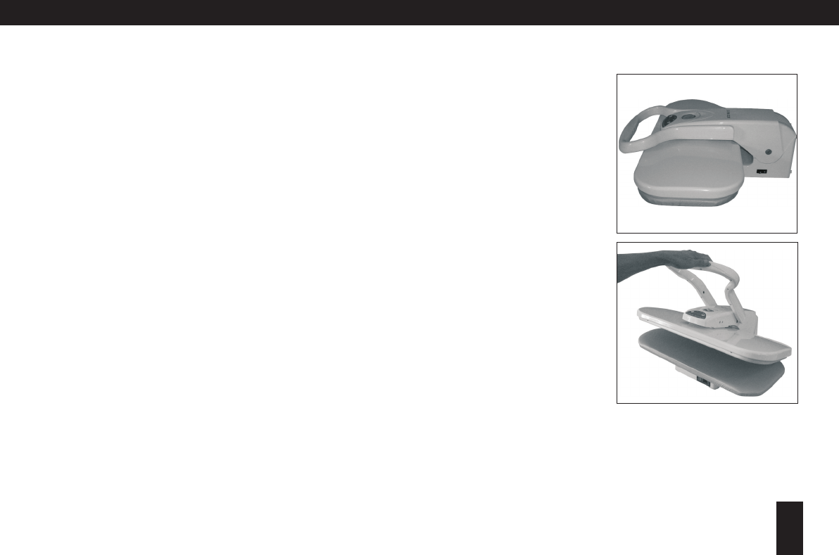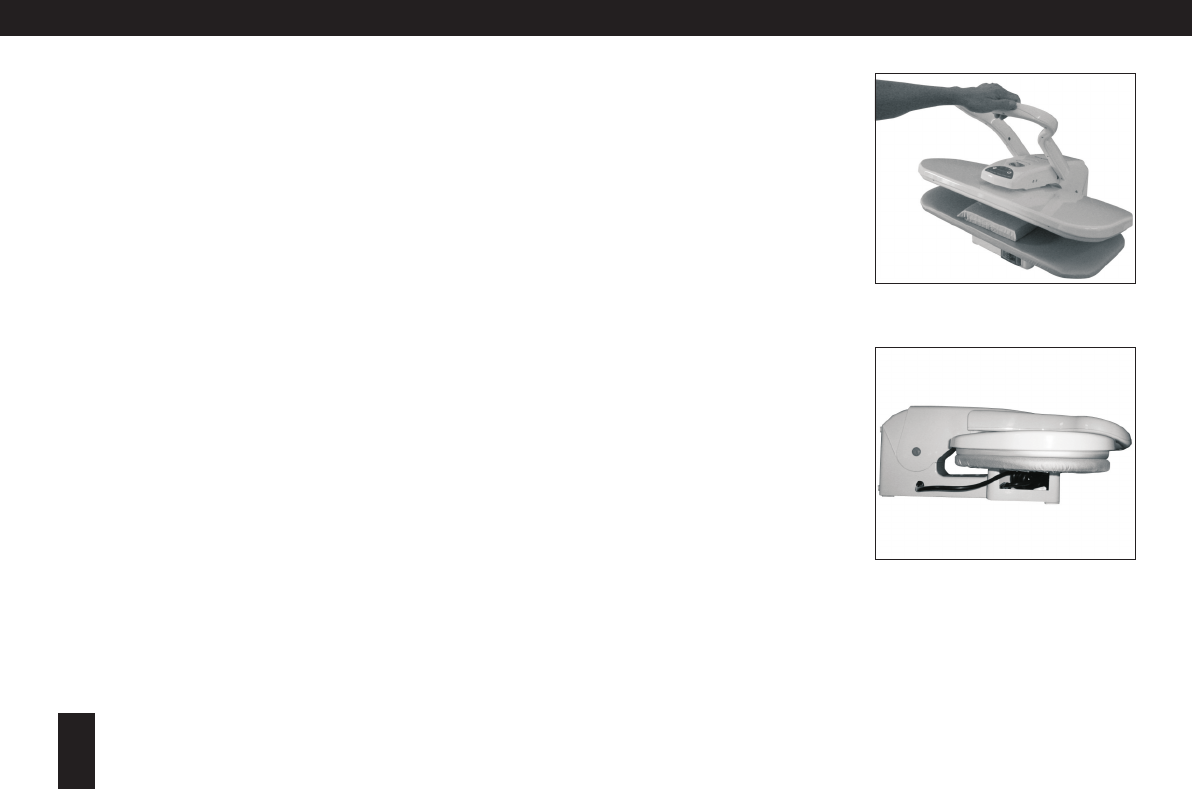 you, over the Ironing Board, and lower the Pressing Plate. Press the fabric in sections until completed.