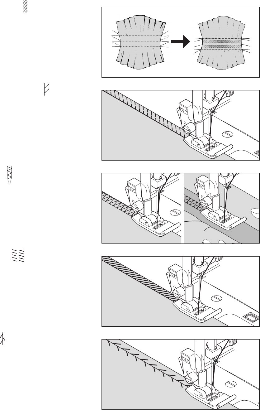 16. “Do not pull or push fabric while stitching. It may deect the needle causing it to break.”
