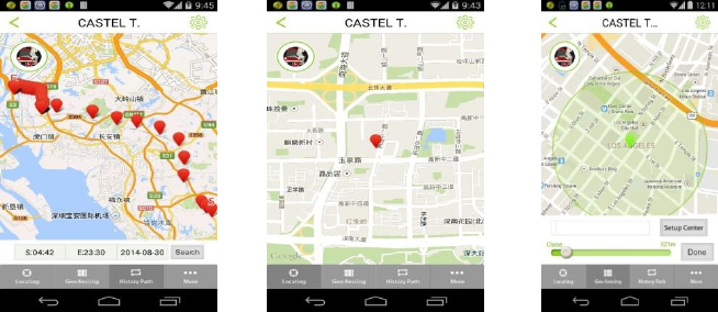 Geo-fencing: User can add a circle geo-fence in APP. Center of the circle can be set by