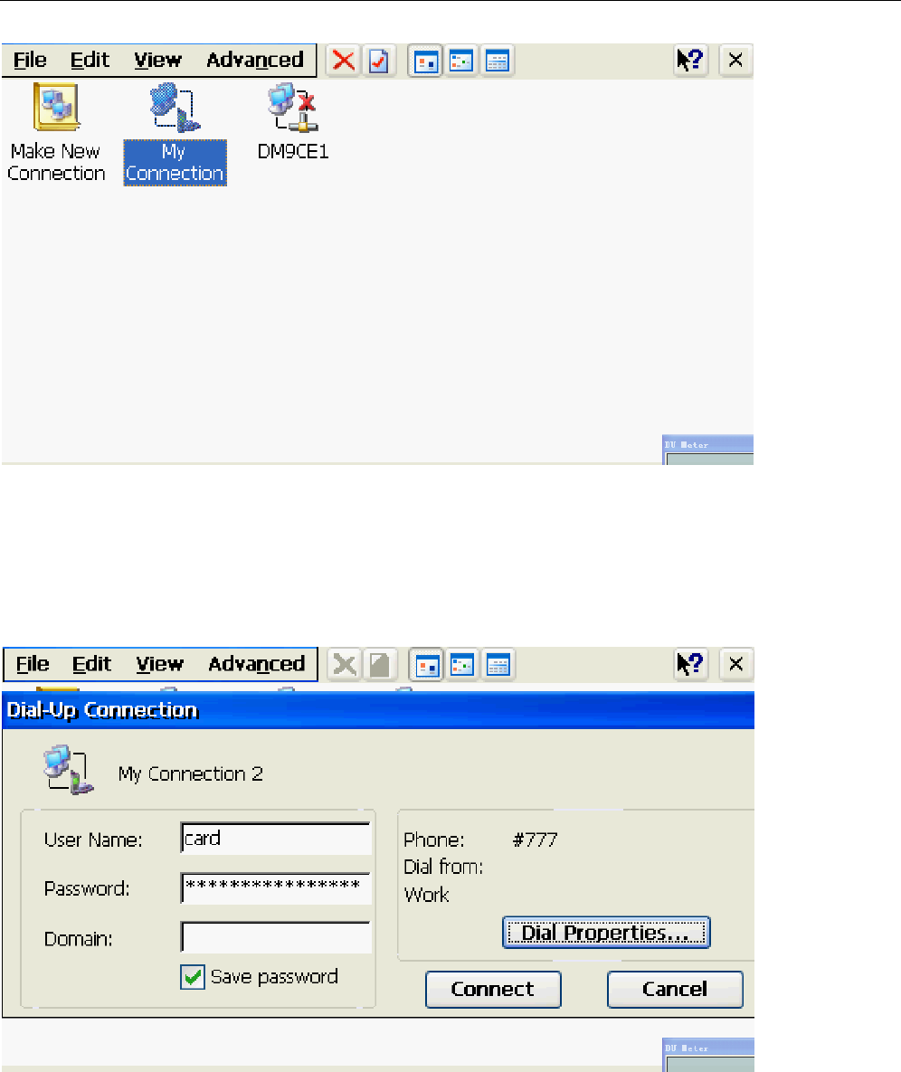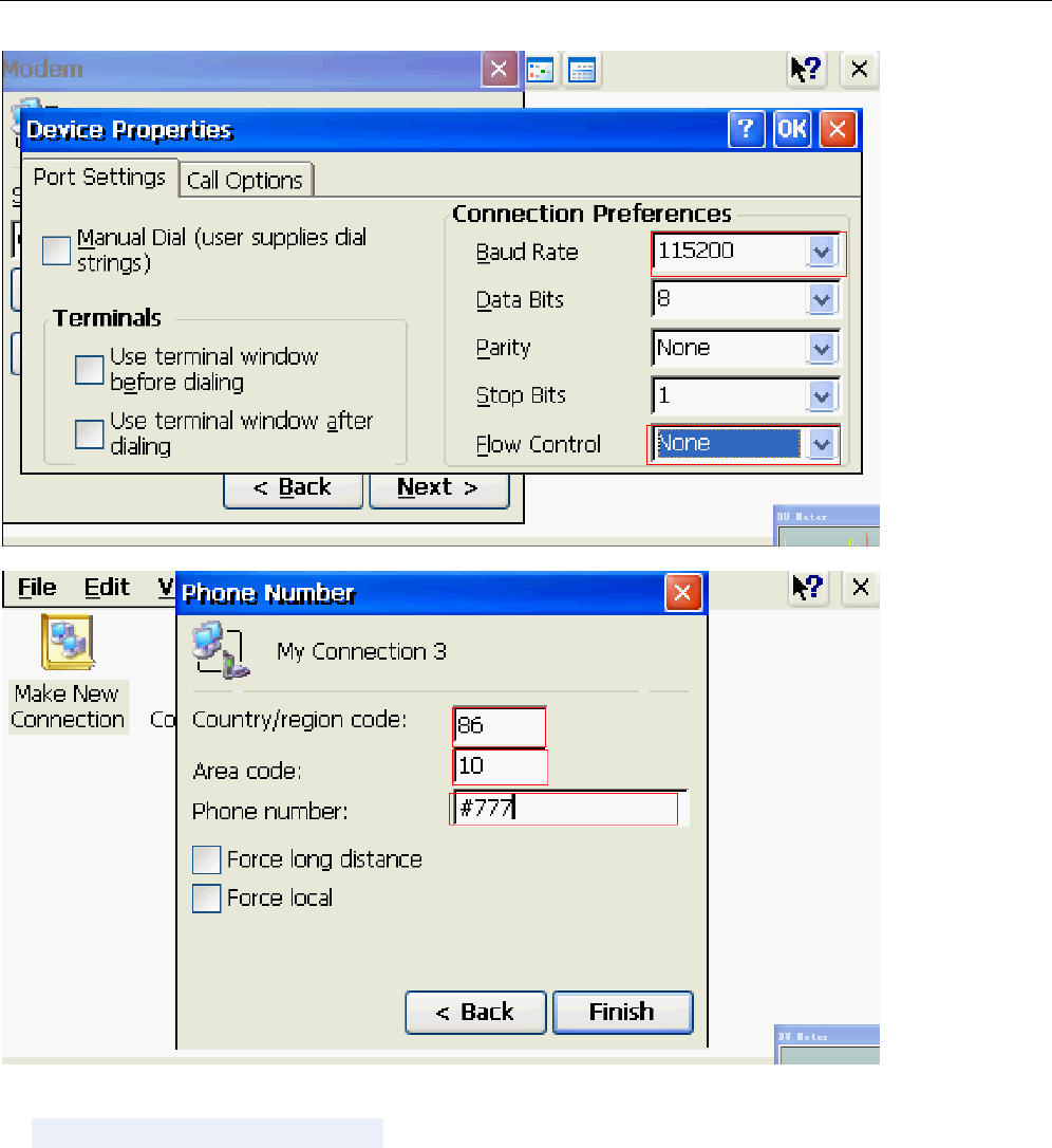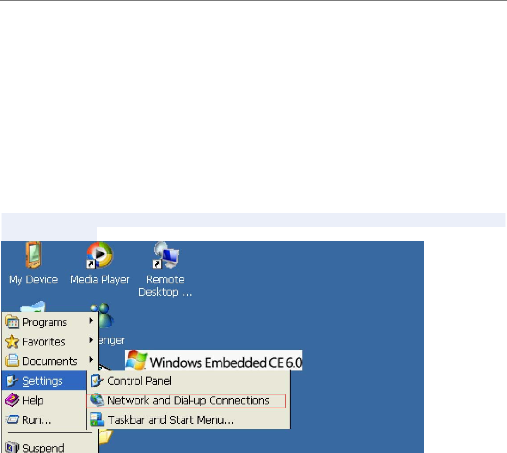 WIN CE 6.0 comes with the use of dial-up software to create dial-up link, baud rate: 115200,
