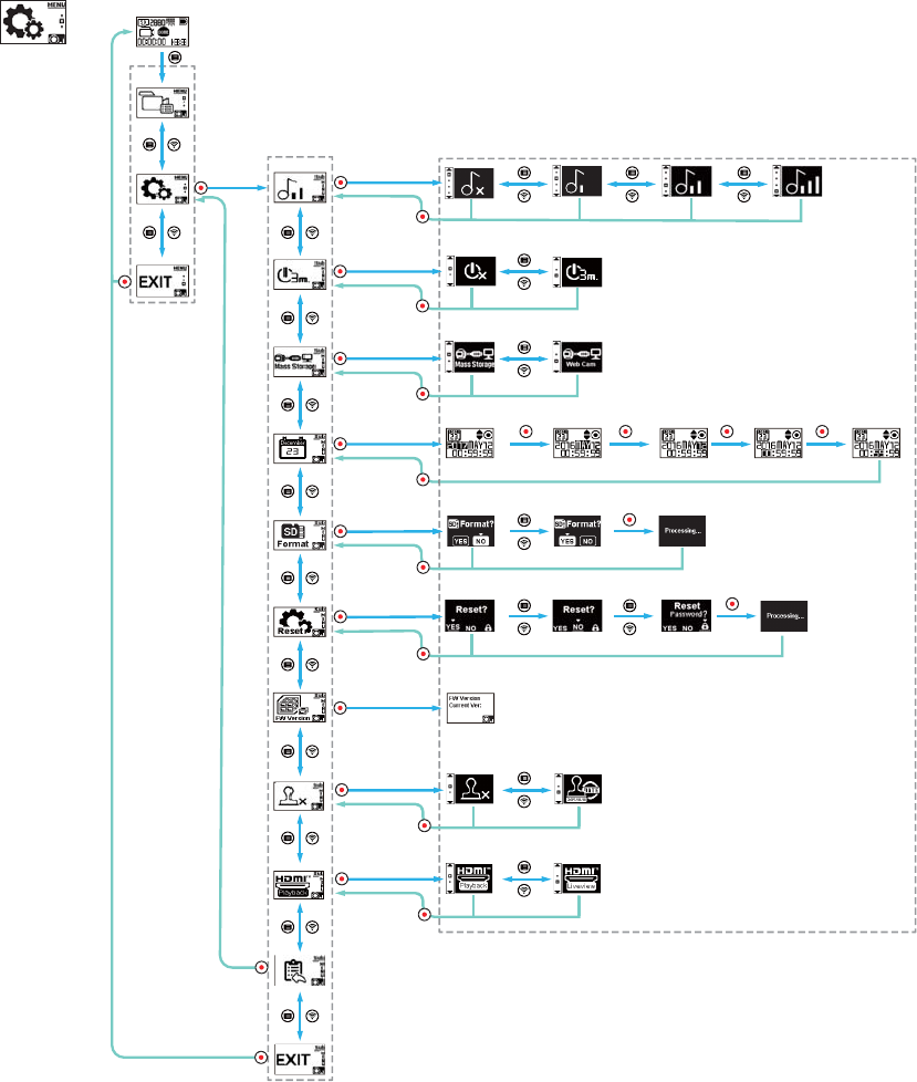 The camera is set as "Web Cam", connecting to the computer USB. User should do nothing.