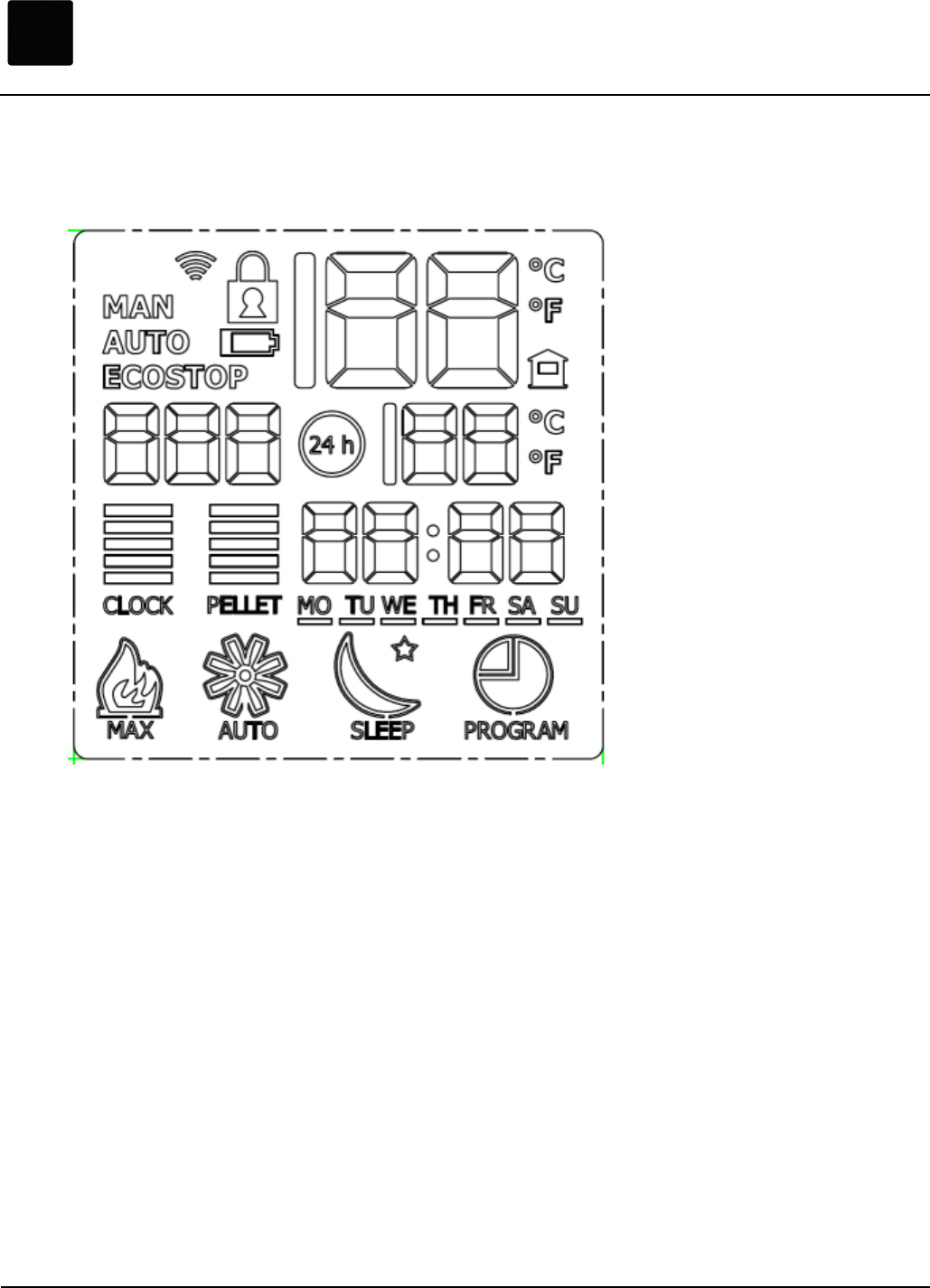 With stove lighted, by pressing “B” key the operational mode is switched from manual to automatic (see