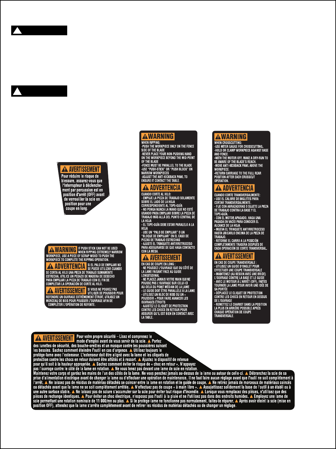 LA PRÉSENTE GARANTIE NE S’APPLIQUE PAS AUX ACCESSOIRES TELS QUE LAMES DE SCIE CIRCULAIRE, MÈCHES DE PERCEUSES, FERS DE TOUPIES, LAMES DE SCIES