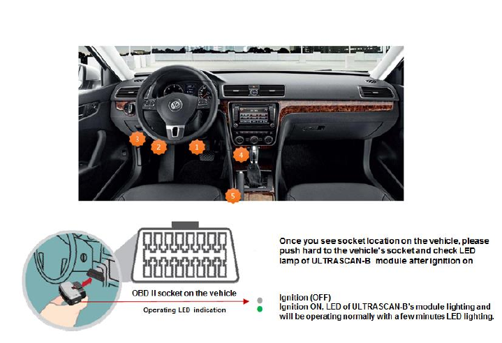 3. After Ignition ON, LED of Ultrascan-B’s module lighting and will be operating normally with a
