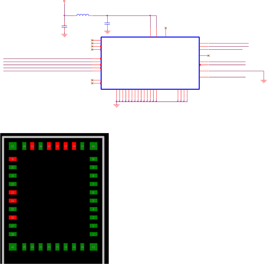 soldered to a PCB using with three external interfaces, power, SPI bus and u.fl antenna. The module