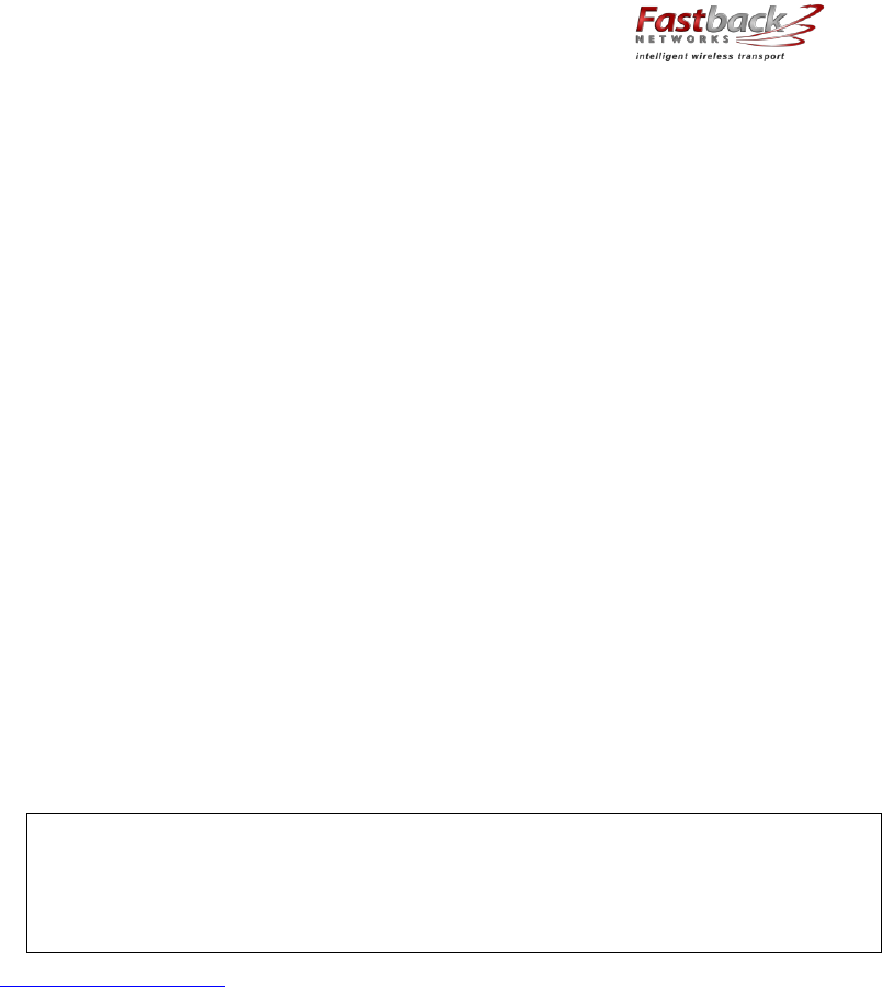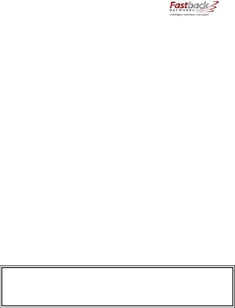 Skyline Partners Technology Fastback Networks 101 Intelligent Backhaul Radio ISM 5.8GHz band User Manual OEM Volume Ag Bass
