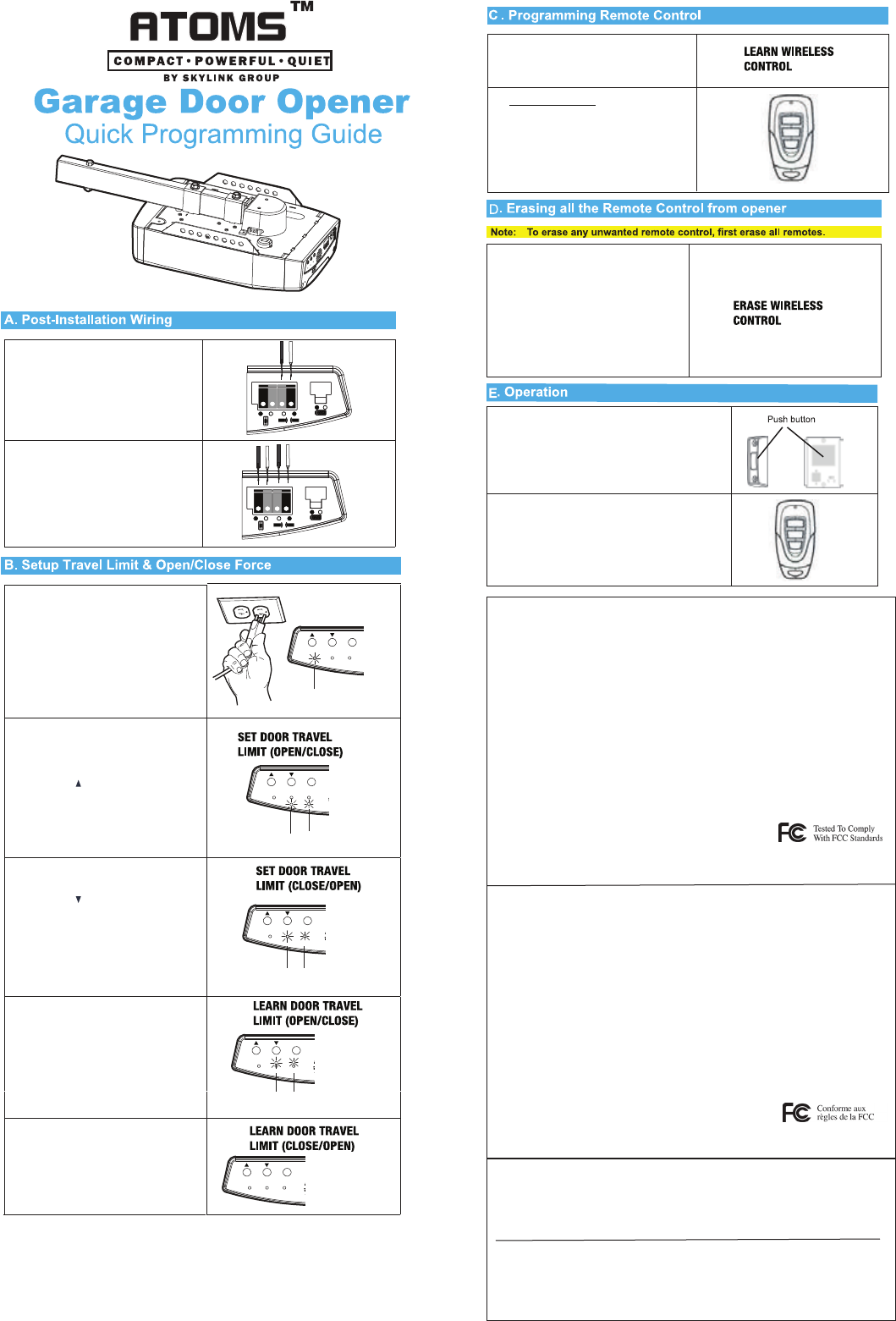 Skylink Technologies ATOM2 Garage Door Opener User Manual MK3 QUICK GUIDE EN Draft X2 outline