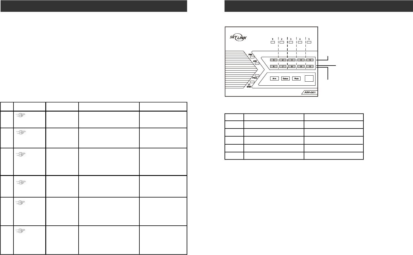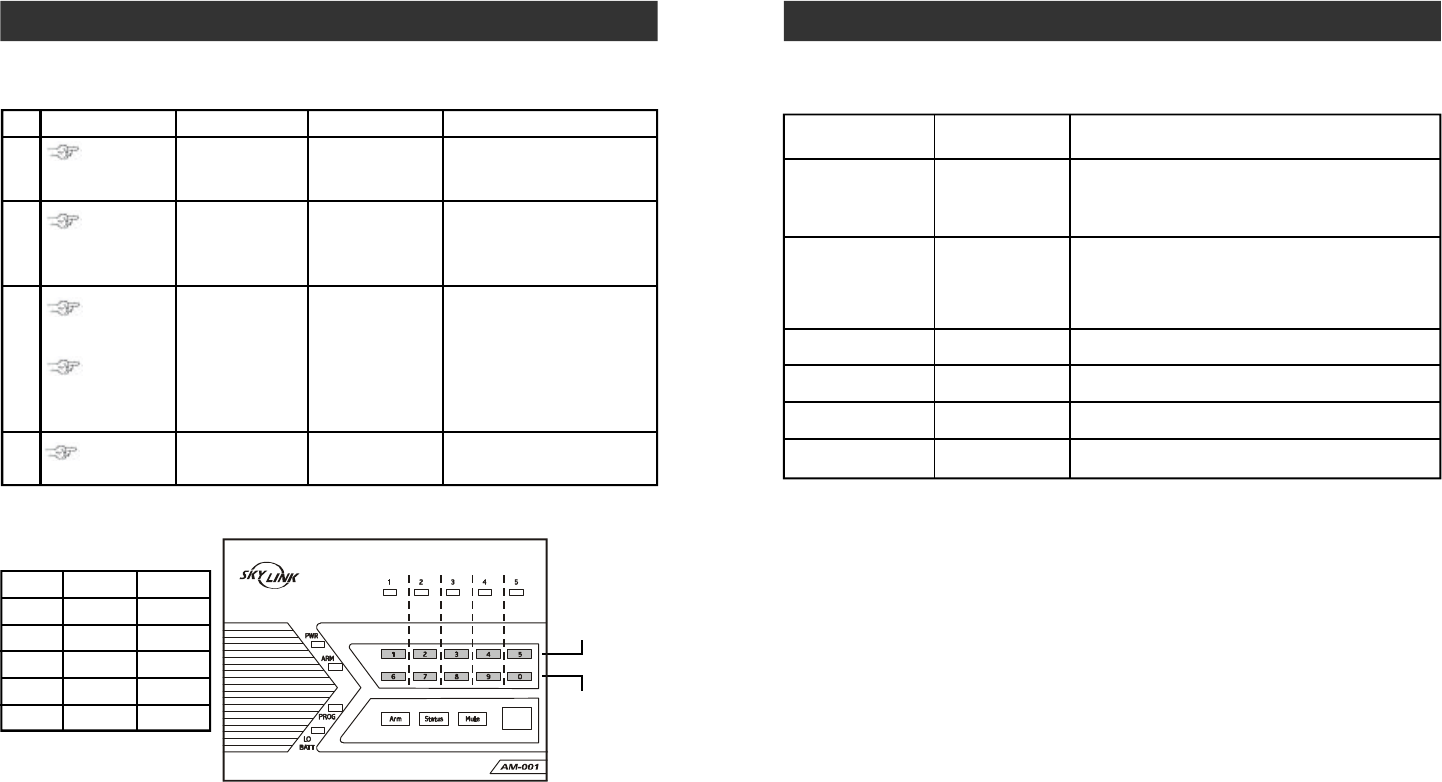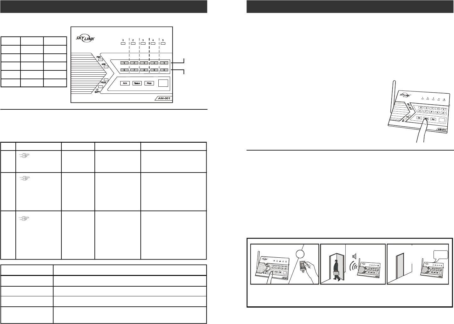 Activado (alarma)3)entrada/salida retrazada4) alarma suena y llama a los