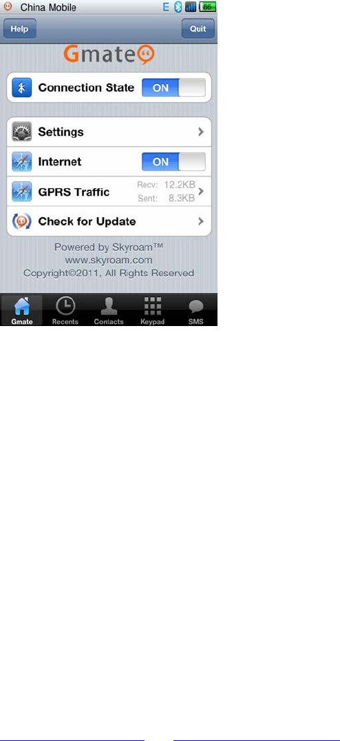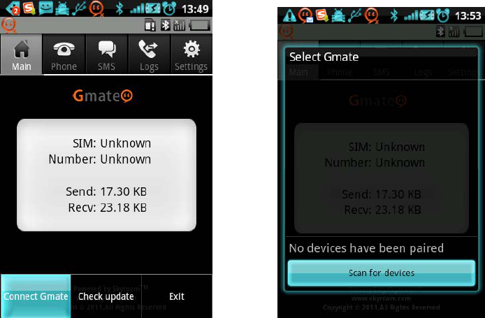 Note: Ensure WiFi or Gmate GPRS is turned on.