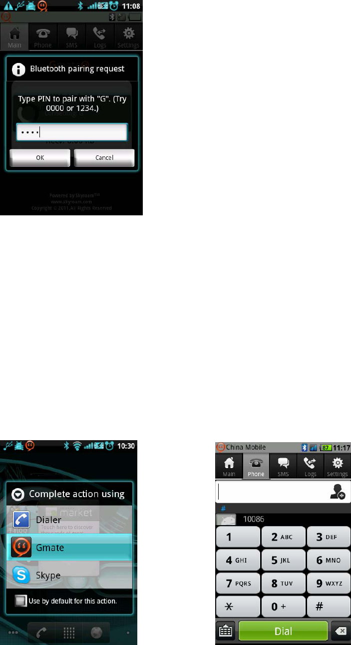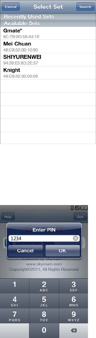 B)From the list of Available Sets, select Gmate+ to connect, and enter the Bluetooth PIN (Default